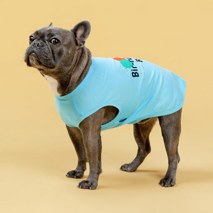 - Birthday-themed t-shirts feature exclusive elements like balloons and a printed font "Bri-ruff-day Boy", adding a creative touch to your pet's birthday style. Also a great gift for the other birthday boys.