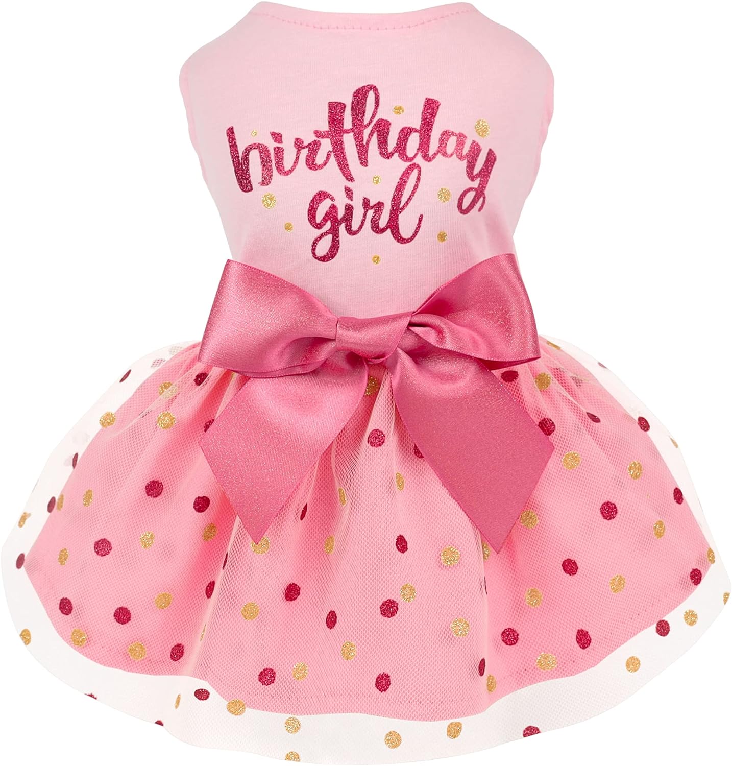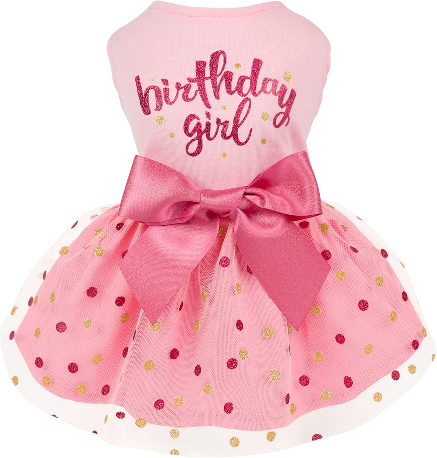 Fitwarm Birthday Girl Dog Tulle Dress, Dog Clothes for Small Dogs Girl, Cat Apparel, Pink, Small