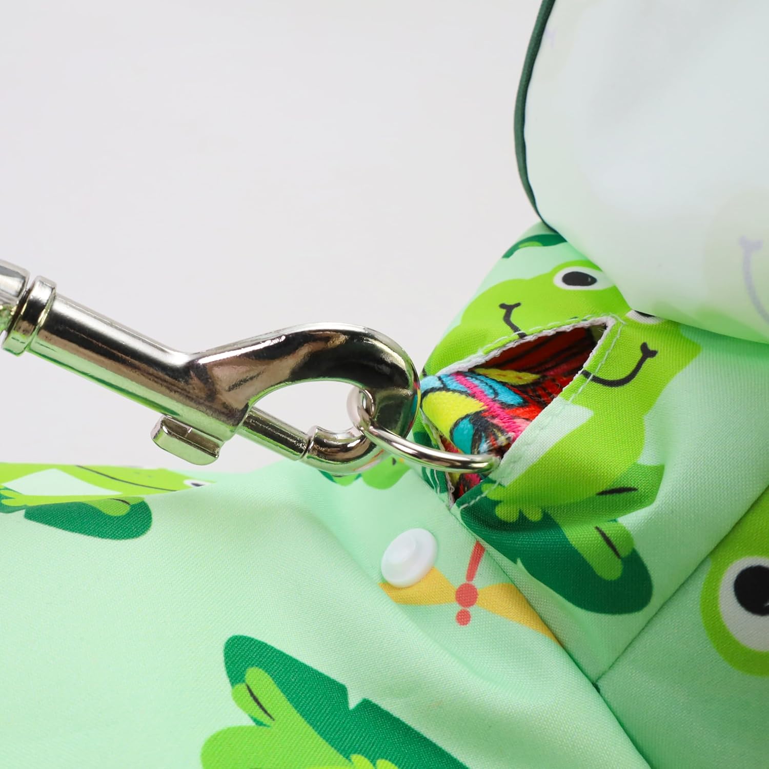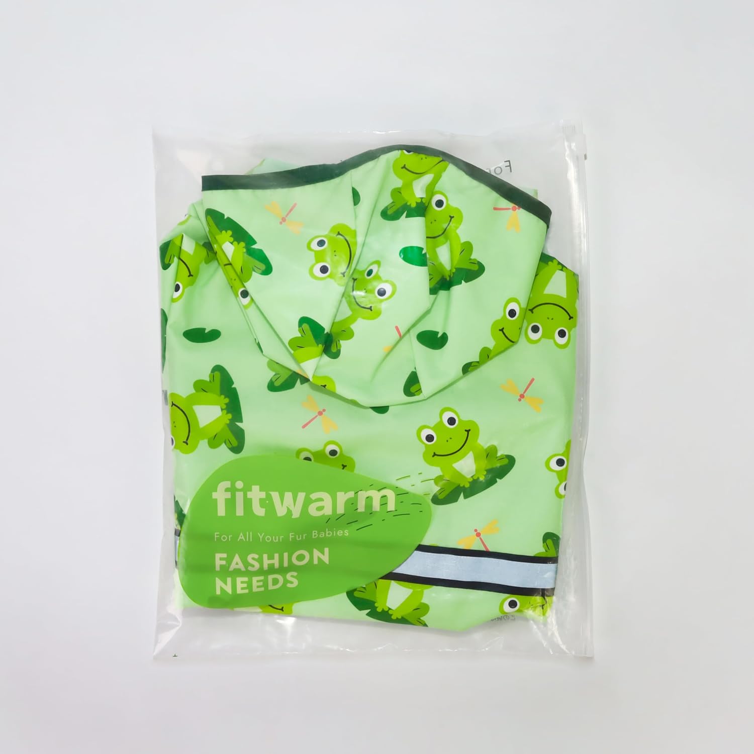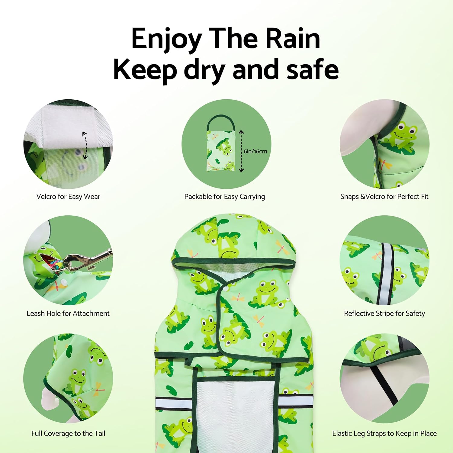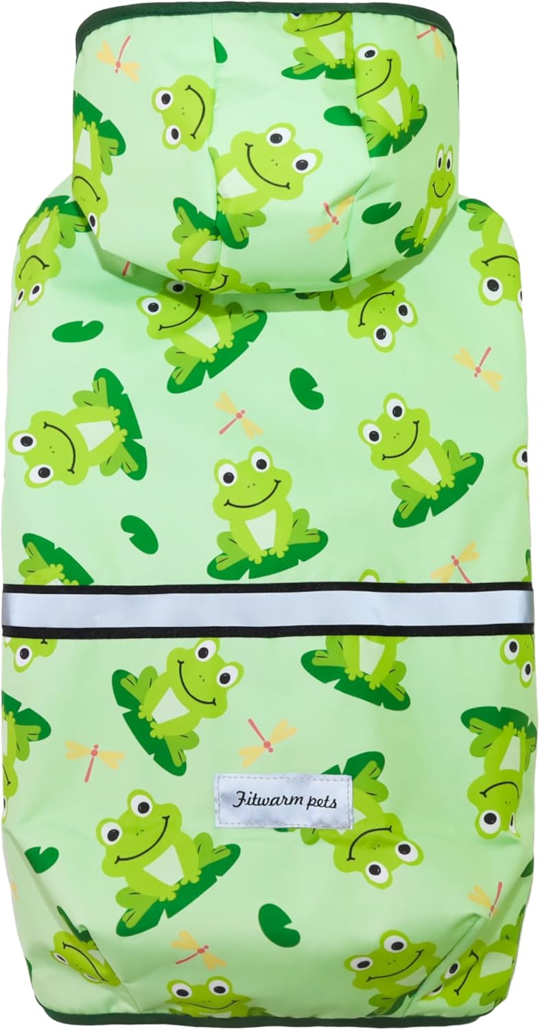 Fitwarm Funny Frog Dog Raincoat with Hood, Waterproof Rain Jacket for Small Dogs Boy Girl, Reflective Pet Poncho with Harness Hole, Packable, Adjustable, Green, Large