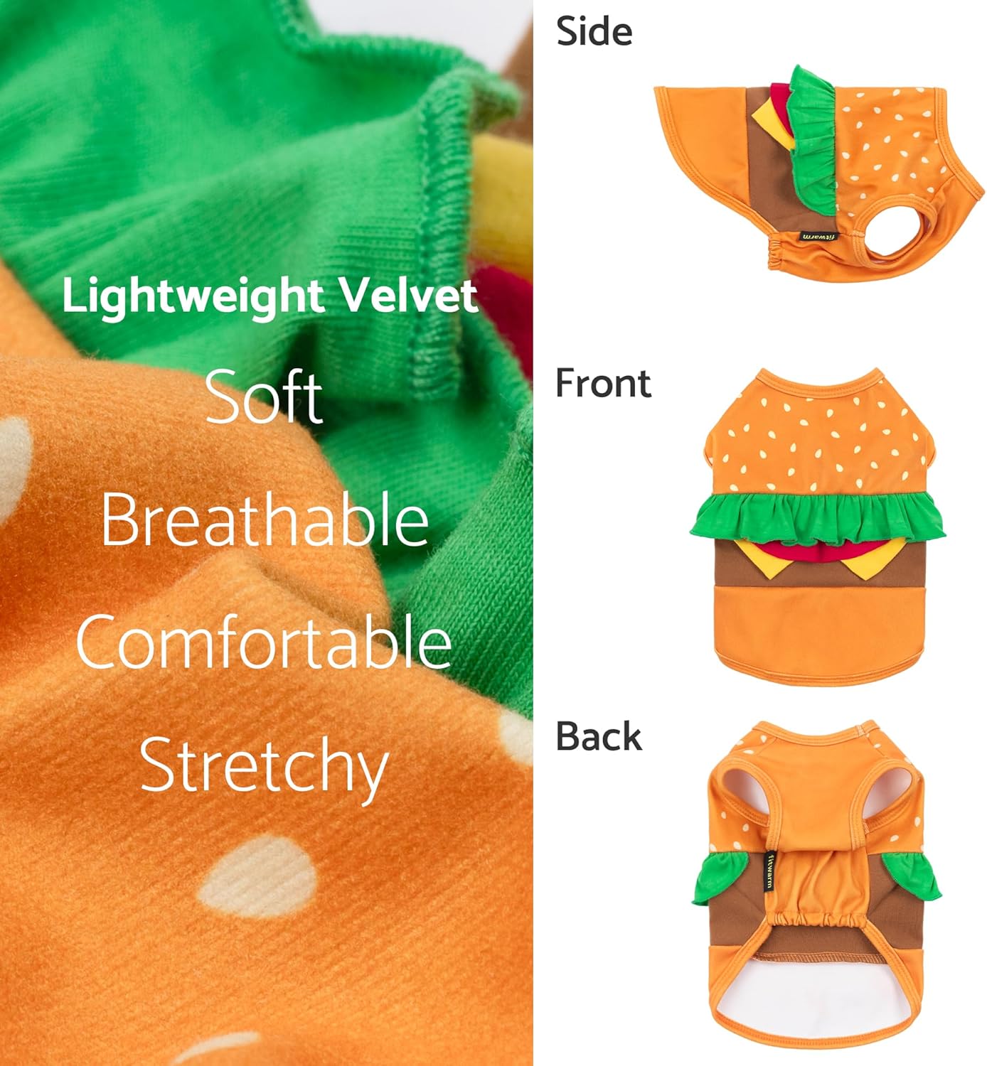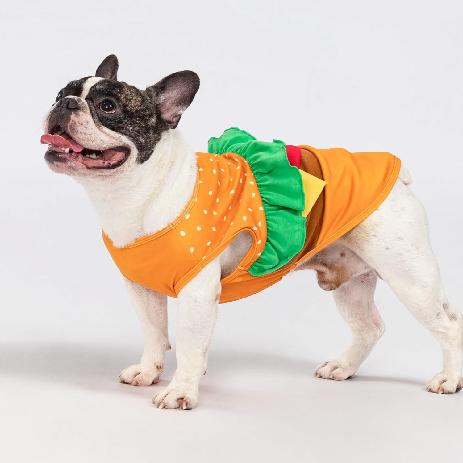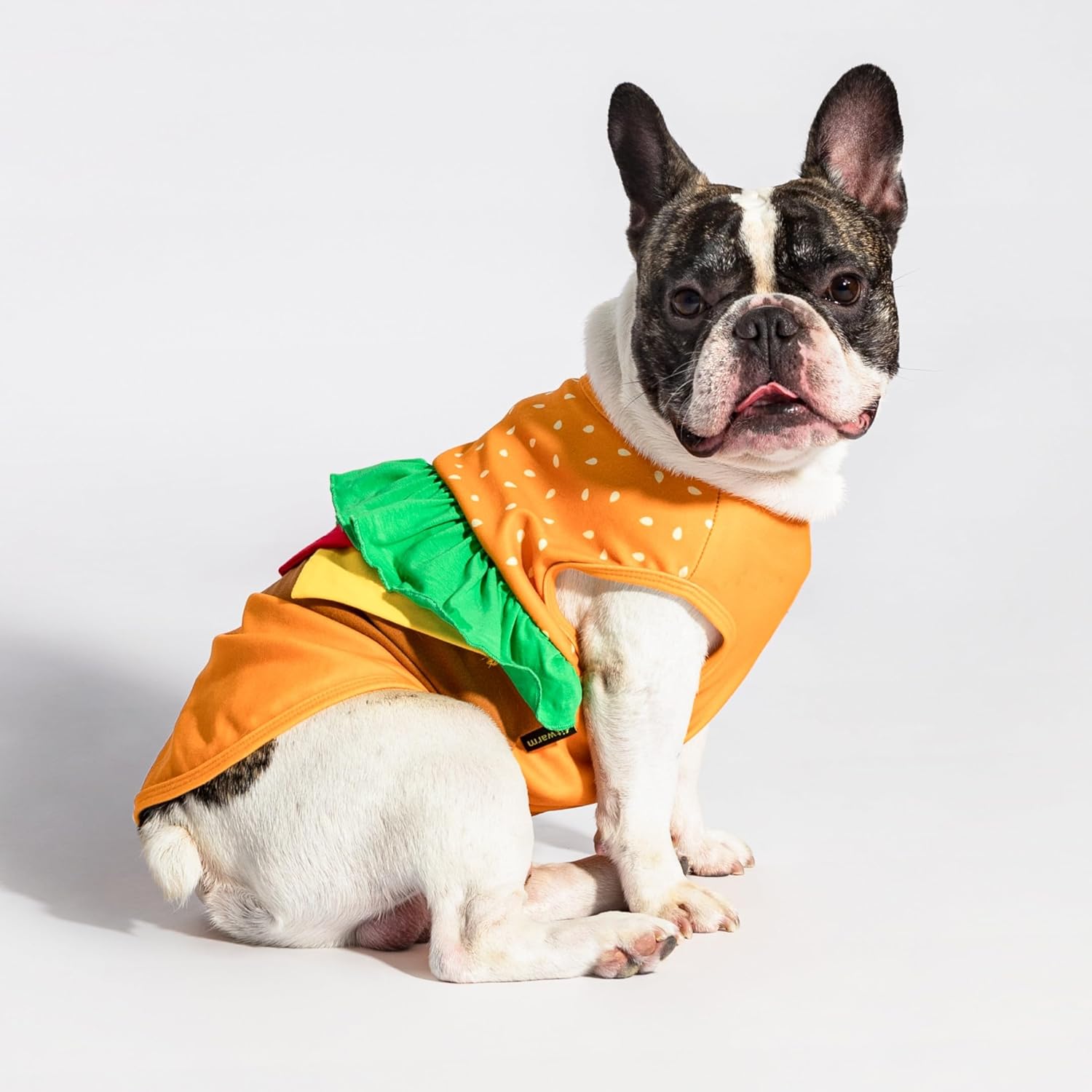 - Get wrapped up in fun with burger costumes for dogs. Perfect for bringing laughs at Halloween party or trick or treat. Whether posing for photos, everyday walk, or just showing off at home, this outfit serves up charm with every step.