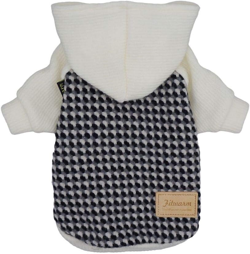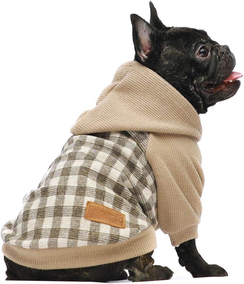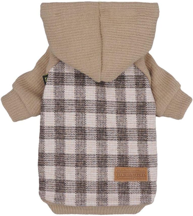 Fitwarm Tartan Plaid Dog Hoodie, Knitted Dog Clothes for Small Dogs Boy, Pet Sweatshirt, Knitted Sweater, Beige, Small