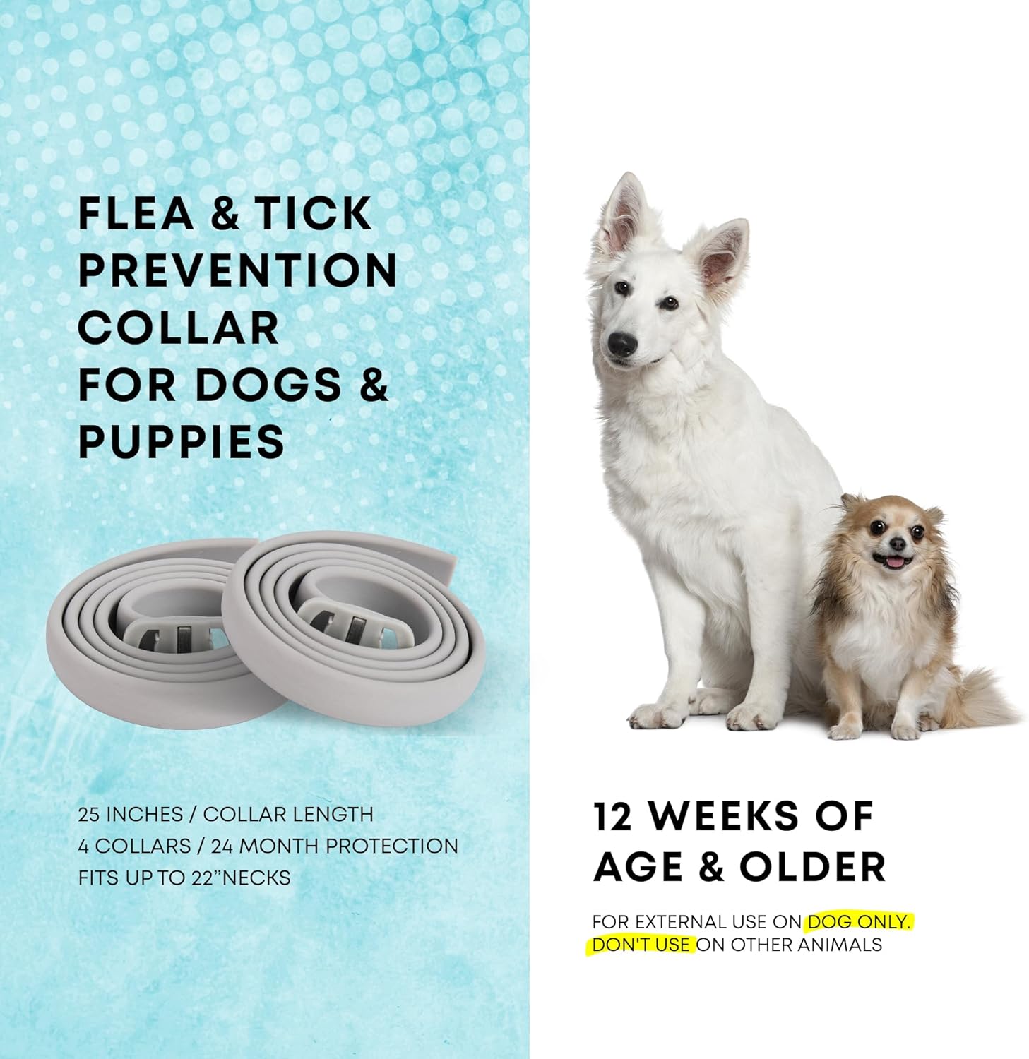 - 4-Pack Flea Collar for Dogs – Fits Small, Medium & Large Dogs (Up to 22" Neck): Each package includes 4 flea collars for dogs (25 inches long), adjustable to fit small, medium, and large dogs. This dog flea collar provides effective flea and tick prevention for dogs with protection against fleas, ticks, and larvae.