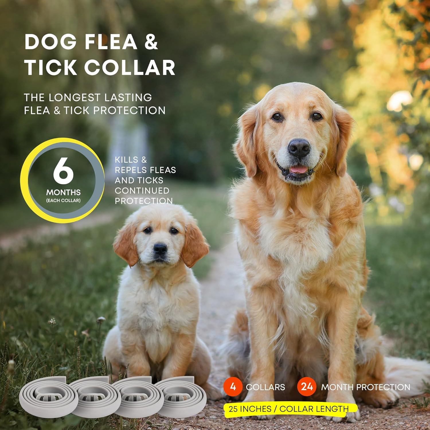 - Long-Lasting Dog Flea & Tick Treatment – Up to 24 Months of Protection: Our flea and tick collar for dogs ensures powerful, long-lasting flea and tick prevention for dogs, providing up to 24 months of protection with 2 collars, each offering 6 months of flea treatment dogs need.