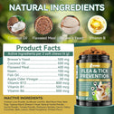 - Safe & Natural Ingredients: Our flea and tick prevention for dogs chewable are made with soft chews rich in coconut oil, flaxseed, neem, and brewer’s yeast—ingredients that are perfect for your dog's daily supplement. Free from harsh chemicals or artificial additives, they provide natural and effective protection while enhancing your dog's skin resilience. These dog flea treatment chewables are safe for both puppies and senior dogs, offering a gentle yet effective flea prevention solution