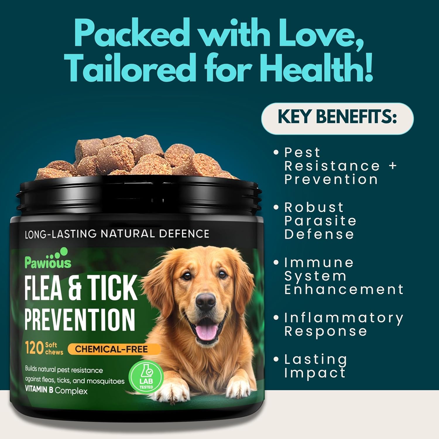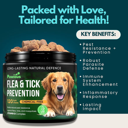 - ✅ Natural Flea & Tick Prevention - Protect your dog from fleas, ticks, mosquitoes, and other parasites using our natural supplement. Our exclusive blend of natural ingredients serves as a deterrent, helping to shield your furry friend from the discomfort of pest bites.
