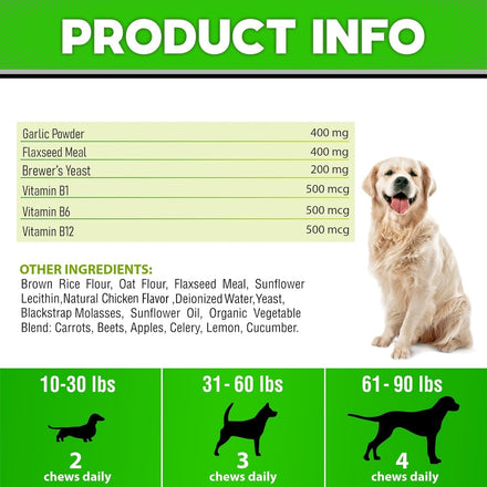 Looking for a product to help keep your pet free of fleas and ticks? Look no further!. Our dog chews are made with ingredients that help to repel fleas and ticks, keeping your pet healthy and happy. Plus, our chews are made with natural ingredients, so you can feel confident that you're providing the best possible care for your pet.