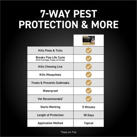 - 7-Way Pest Protection: NextStar provides 7-way pest protection against fleas, ticks, mosquitoes, chewing lice, flea eggs, flea larvae, and prevents the development of flea pupae. With one monthly dose, NextStar helps break the flea lifecycle to prevent fleas from multiplying on your pet.