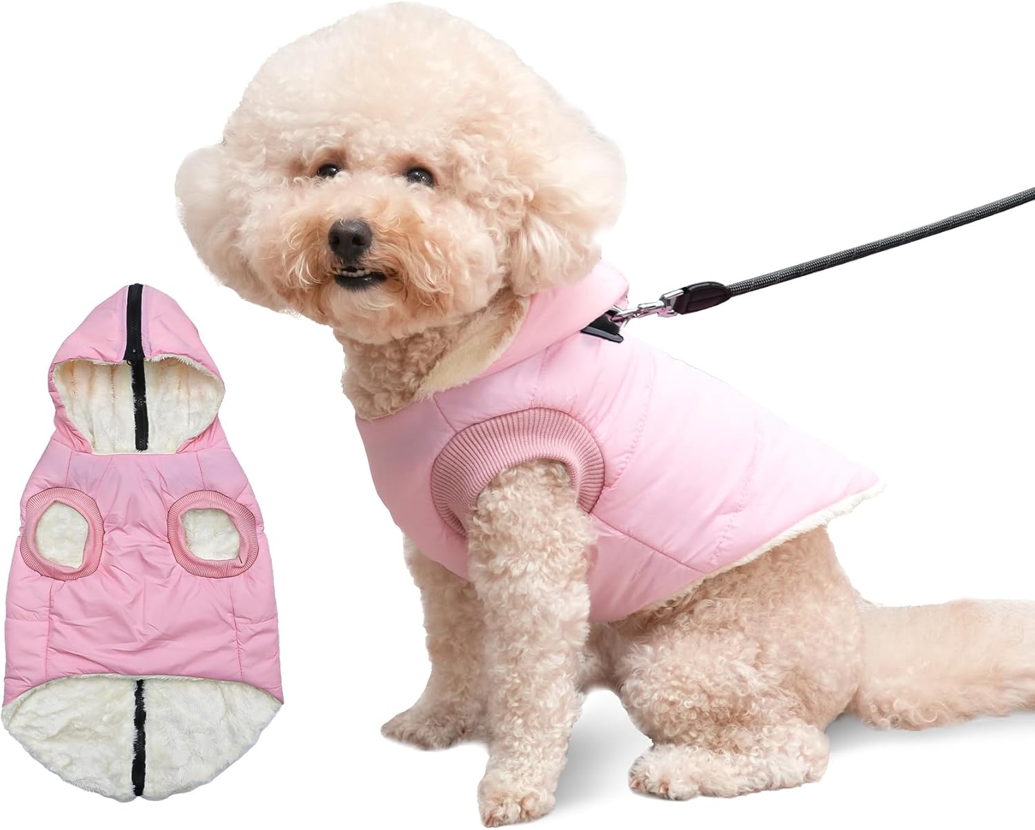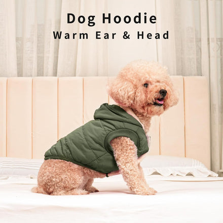 Fleece Lining Extra Warm Dog Hoodie in Winter for Small Dogs Jacket Puppy Coats with Hooded Green M