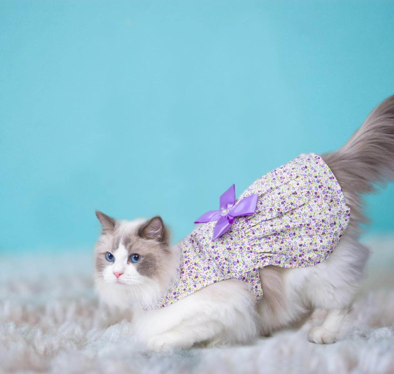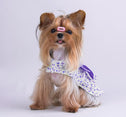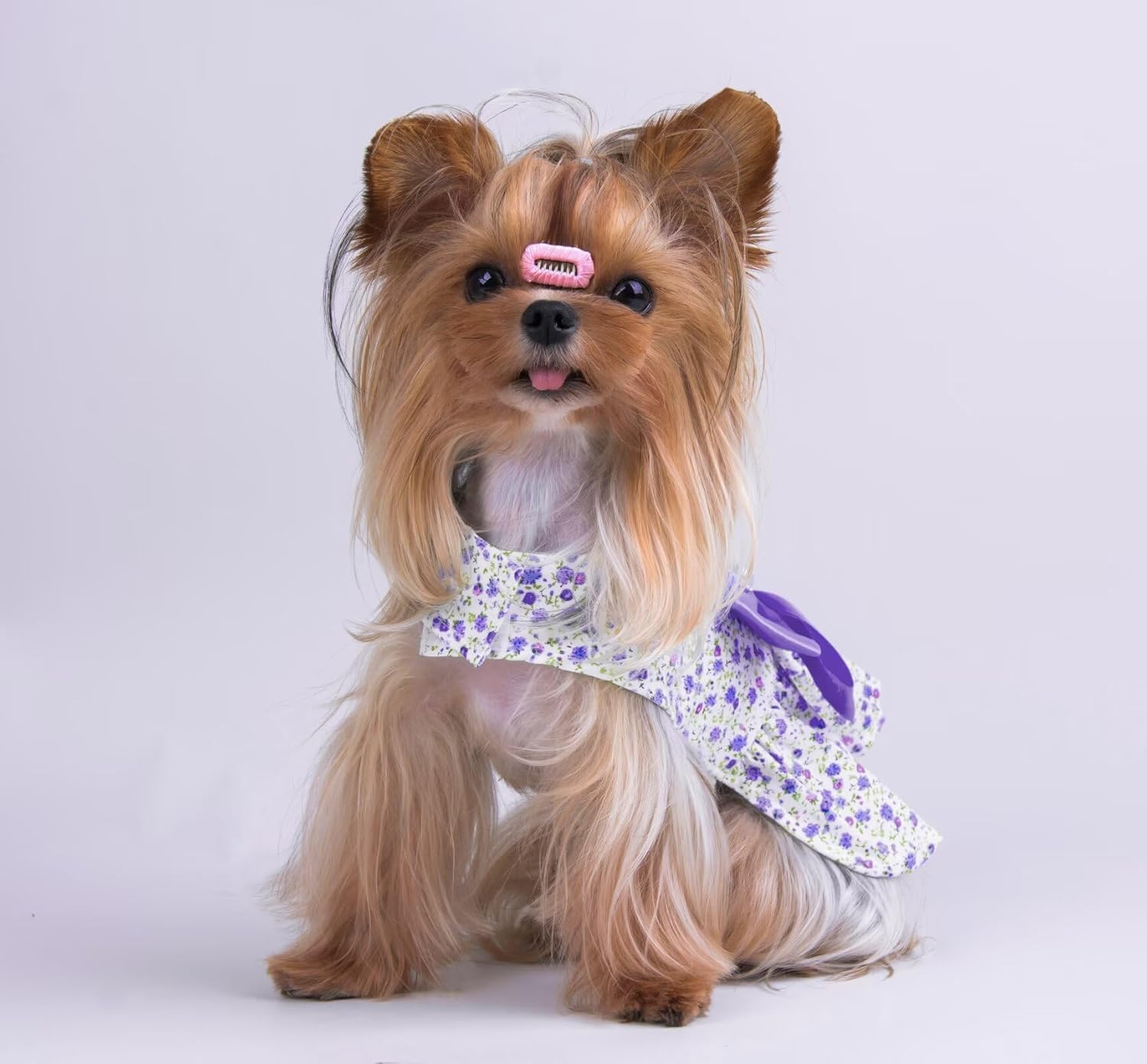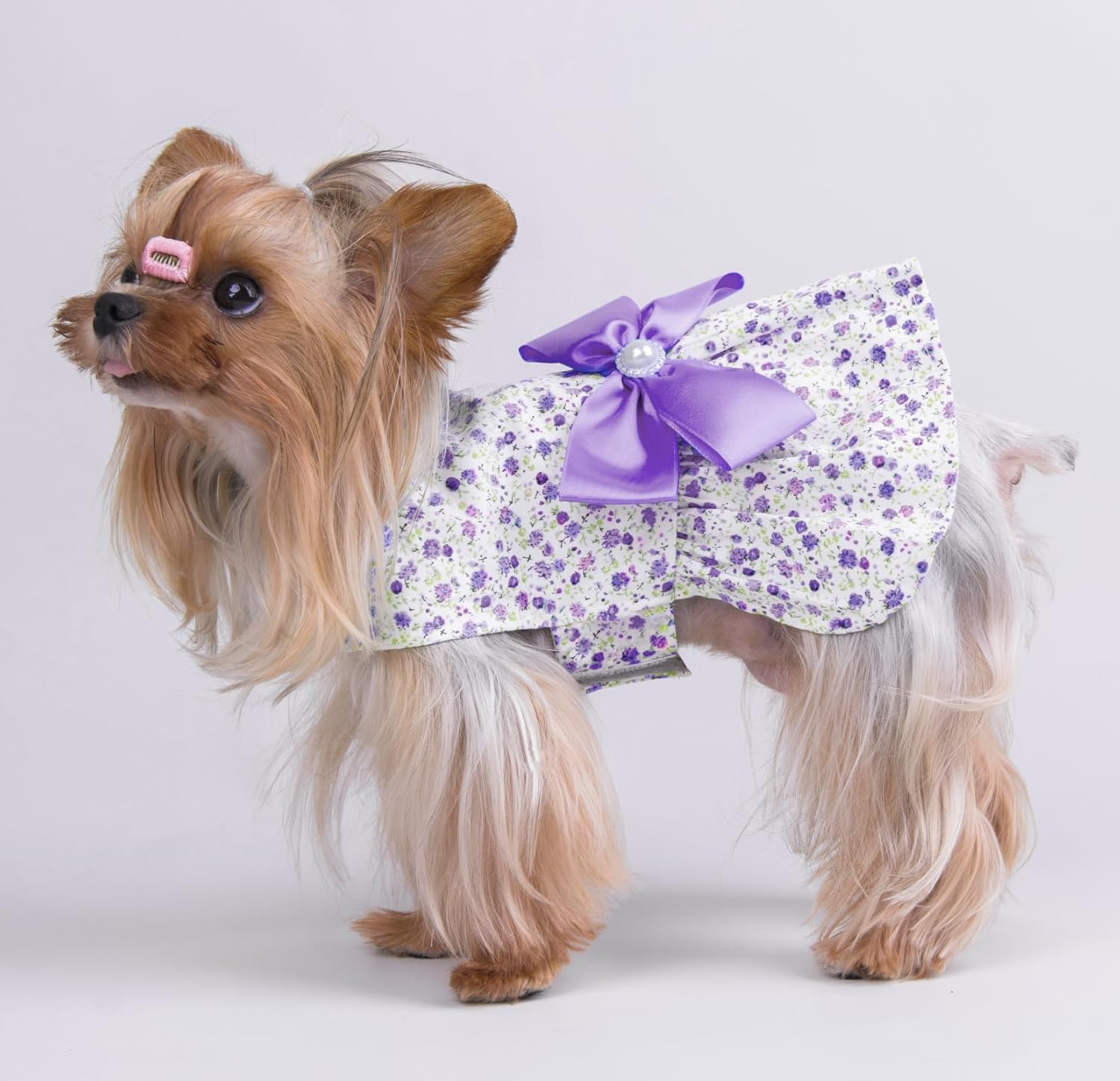 • Adorable Floral Design: The dress features a charming pattern of small purple flowers, accented with a vibrant purple bow, making it a perfect blend of cuteness and style for your furry friend