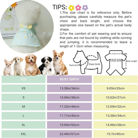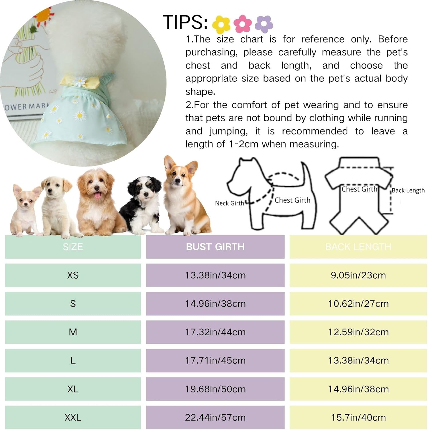 - Size Information: Dog skirt come in different sizes, so you should measure your dog's chest, neck, and back length to get the right size. It's essential to choose a dress that fits your dog comfortably, not too loose or too tight.