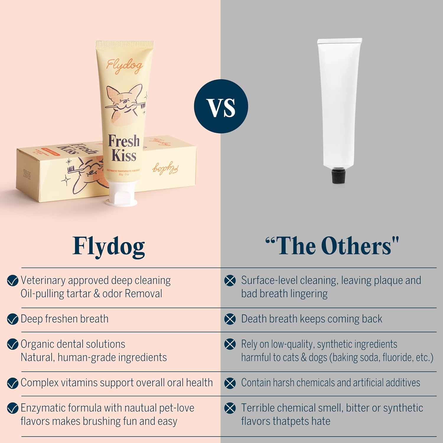 Fresh Kiss Pet Toothpaste features a powerful combination of coconut oil and bio-enzymes. These ingredients are scientifically proven to effectively combat bacteria while providing a gentle and soothing experience for your pet's gums.