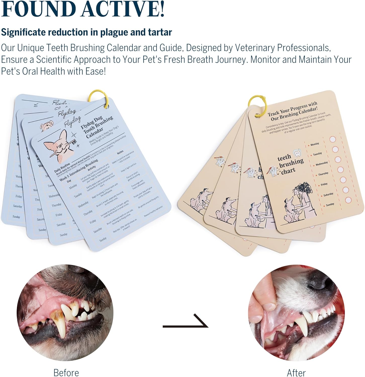Paws Up for Dental Delight! Introducing the Flydog solution – our enzymatic toothpaste for pets, a brushing guide that's paw-sitively easy, and a calendar to keep those dental dates on point!