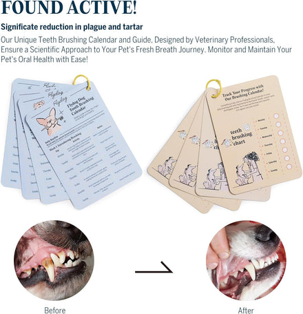 - 🐾 Ready to Build Healthy Habits 🐾 — Our kit includes two enzymatic toothpastes for pets, a step-by-step brushing guide, and a calendar to track progress. Together, they make establishing a good oral care routine simple and sustainable for your pet's long-term health.
