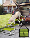 - Portable & Adjustable: Designed with convenience in mind, our aluminum frame ramp is lightweight and foldable for easy transport and storage. It features two adjustable angles, allowing you to customize the height for your dog’s needs, making it an essential travel accessory! Dog steps for the car fold to 17.1" x 6.3" x 13.0" to put into the car, which is convenient to carry without taking up much space. Height adjustable range of 22.63"-25.19", Adjustable length range of 30.3"-43.3".Please check whether your car can be used before purchasing.