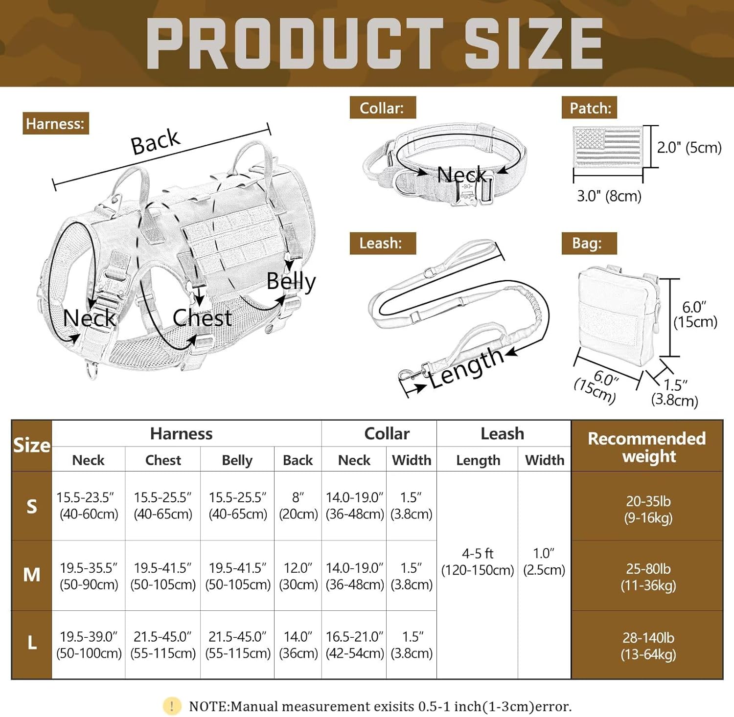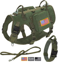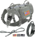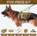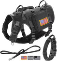 - All-in-One Tactical Bundle for Active Dogs: 1 military-grade dog harness,2 MOLLE backpacks,1 tactical collar,1 shock-absorbing bungee leash and 3 hook and loop patches.Perfect for hiking,training or urban adventures--store treats,gears in the pouches