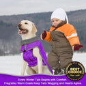 Gear up for action: Be ready for every snowball showdown with the secure rear leg strap, keeping the large dog coat perfectly in place during all winter mischief with this dog puffer vest