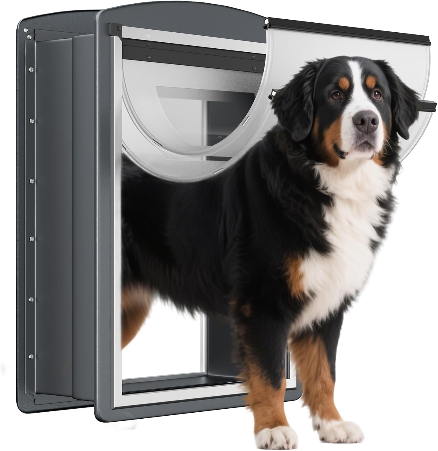 - Strong & Durable: Freestanding large dog door made from high-strength iron. It's finely polished and rust - proofed, offering great impact and abrasion resistance, capable of enduring your pets' playful escapades. This dog door fits different walls, integrating flawlessly into any home decor.