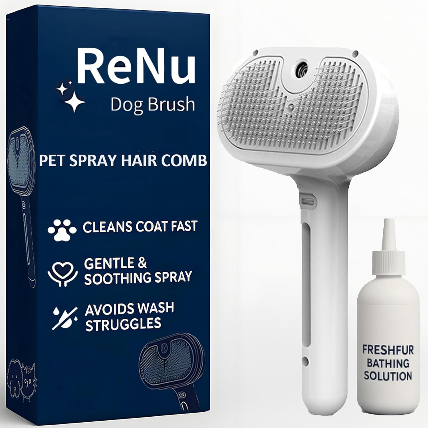- 3-in-1 Steamy Shower Brush: ReNu Dog Brush Fresh Fur Shower Brush combines bathing, brushing, and steam cleaning in one tool – perfect for dogs & cats. Simplify grooming while removing loose hair during bath time!