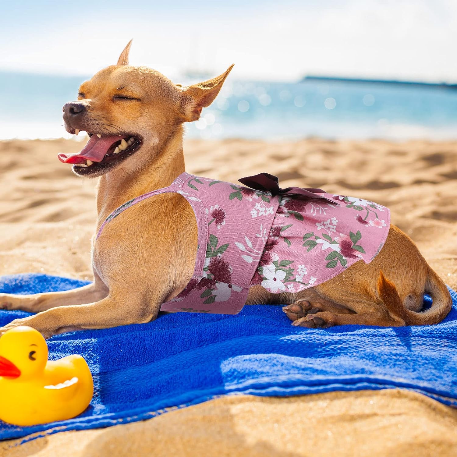 • Flower design: the dog sundress is printed with various kinds of flowers in bright colors, with bows on the waist, collar design does not strangle the dog's neck; When the dog is dressed, it will not affect their activities