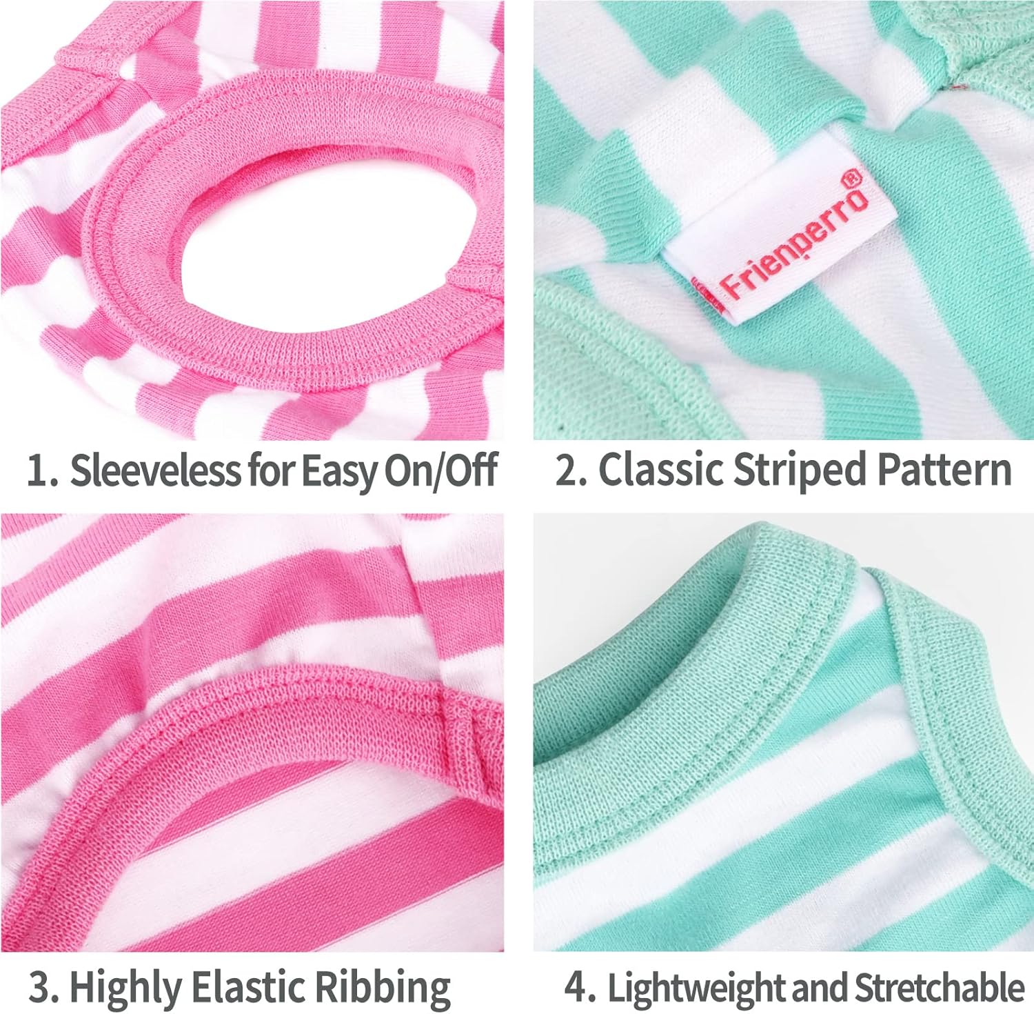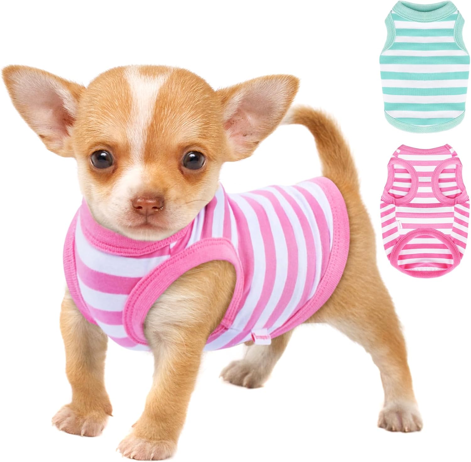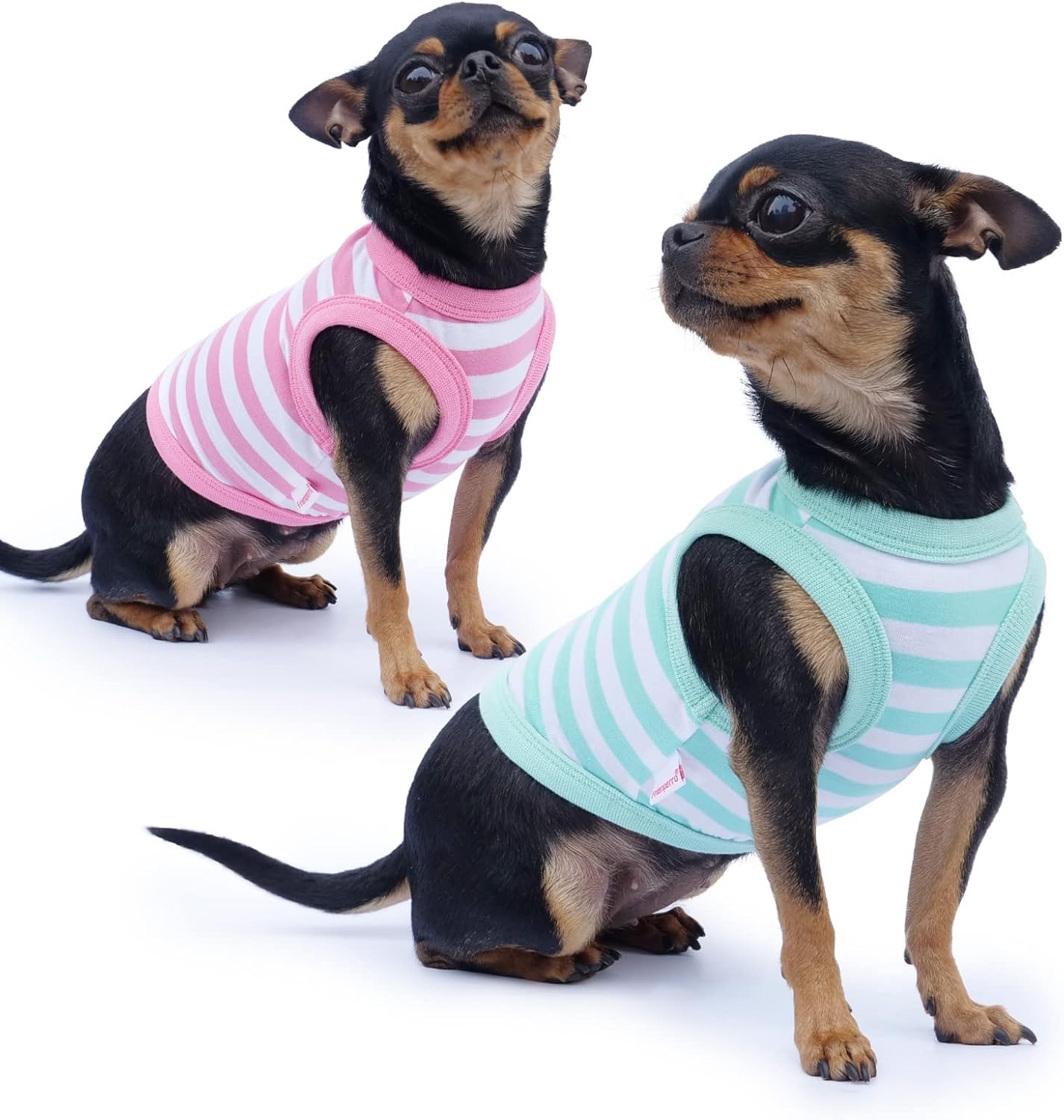 Frienperro 2 Pack Chihuahua Clothes, XXS Dog Clothes, Small Breed Clothes, Puppy Dog Clothes for Dogs Girl, Cotton Striped Sleeveless Small Teacup Yorkie Outfit Cat Vest Shirt Green Pink