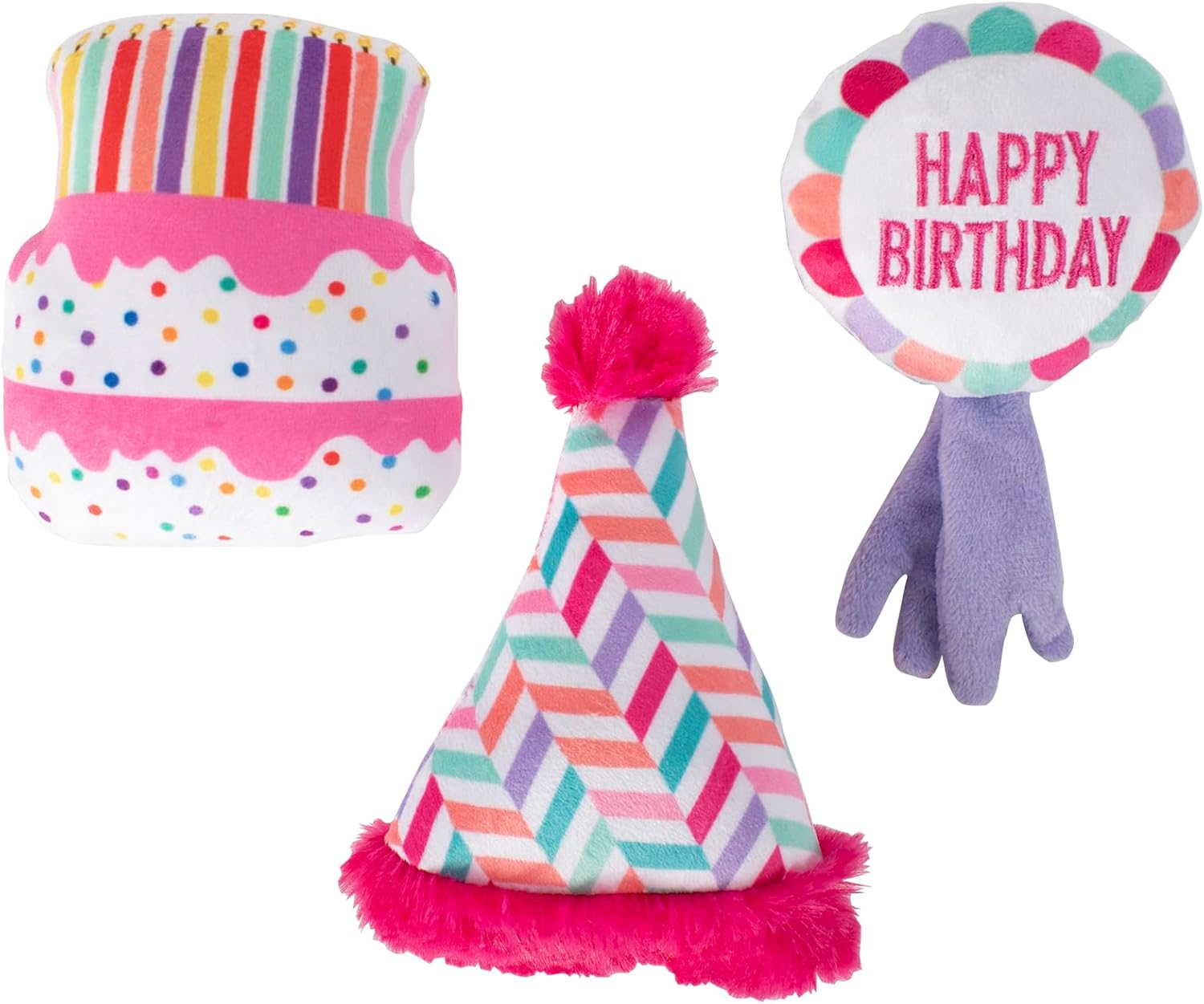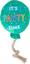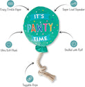It's Pawty Time! Petshop by Fringe Studio “I Pawty, You Pawty” is perfect for playtime, anytime. Made with a super loud squeaker, crazy crinkle paper and a tuggable rope, this toy was designed with interactive play in mind. Whether you squeak, crinkle or tug it, your pup will be partying hard with this balloon toy. Great for all sized dogs and not intended for aggressive chewers.