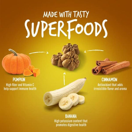- MADE WITH REAL SUPERFOODS - These goodies pack a nutritional punch with ingredients like pumpkin, oats, pearled barley, and potatoes; Your furry friend will relish the deliciousness of these Pumpkin & Banana healthy dog treats
