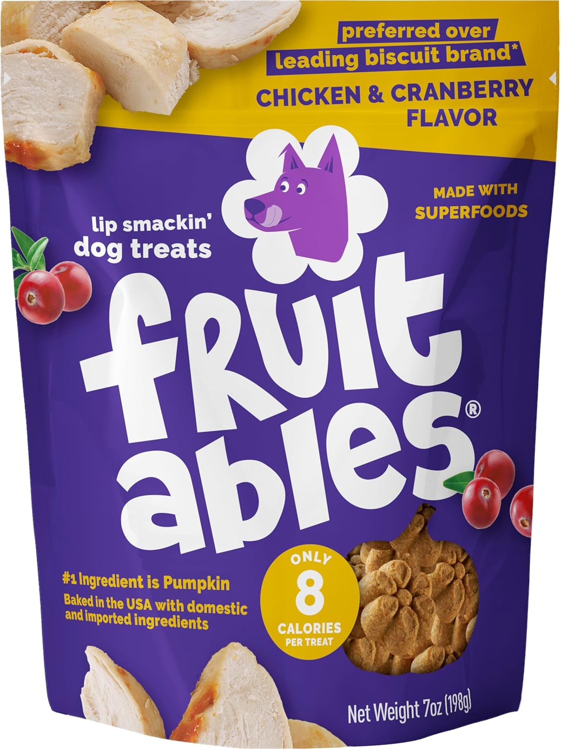 Fruitables Baked Dog Treats bring a whole new level of flavor and health benefits to dog treats! These delicious, healthy dog treats are baked to perfection with real pumpkin, bananas, and other wholesome ingredients to create a crunchy texture and aroma that dogs love. Each bite-sized treat is made with simple, natural ingredients, offering a lower-calorie option that fits easily into your pet’s balanced diet. Whether you’re looking for dog treats for medium dogs, dog treats for small dogs, or a general treat for all sizes, these Fruitables treats are perfect for training and rewarding. Designed as dog training treats, each crunchy biscuit is only 8 calories, making them an excellent choice for dog training. With a focus on delivering healthier dog treats, Fruitables are free from artificial fillers, corn, wheat, and soy, making them suitable even for dogs with food sensitivities. These pumpkin dog treats combine quality and flavor, ensuring your dog receives a nutritious and delicious snack. The natural sweetness from fruits like bananas adds an extra fruity taste, making them irresistible to your furry friend. Proudly made in the USA, Fruitables dog treats are crafted with globally sourced ingredients and adhere to high-quality standards, providing peace of mind with every bite. These tasty dog treats are not only perfect for training sessions but are also an excellent way to show love and care daily. Choose Fruitables Baked Dog Treats for a deliciously crunchy, healthier treat that makes training and rewarding easy, fun, and worry-free for pet owners who want the best for their pets!