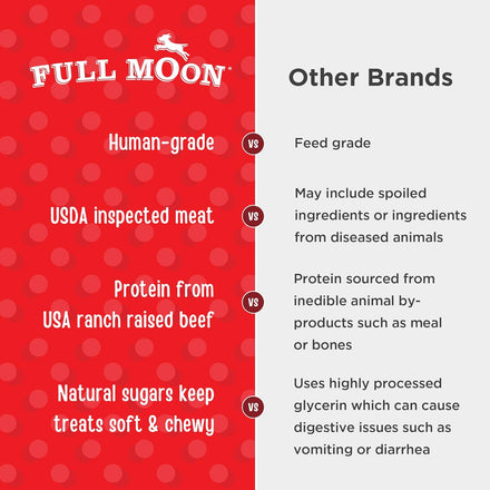 - U.S-GROWN BEEF: Full Moon treats are proudly made in the United States using regionally sourced ingredients, including USDA approved free range beef