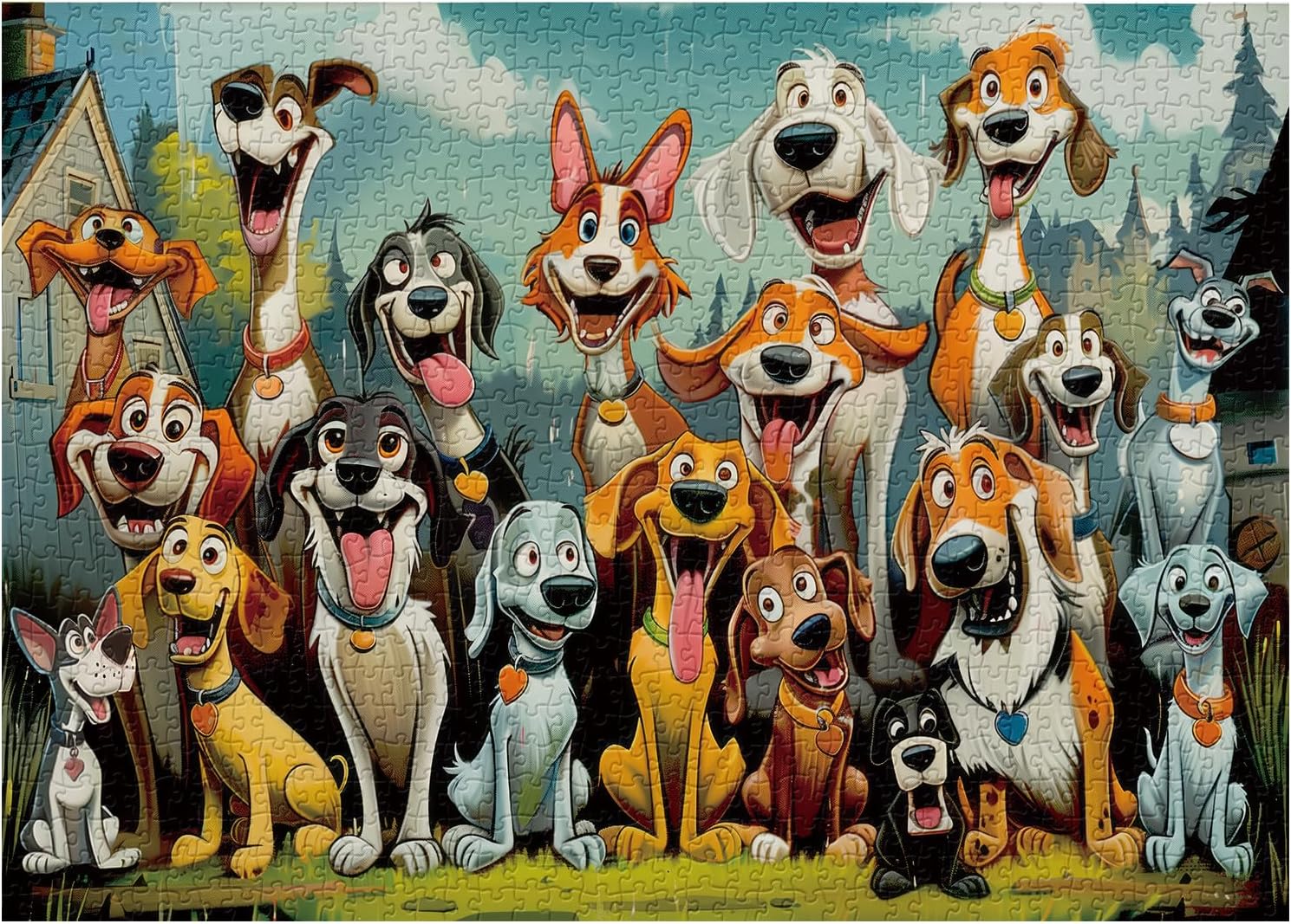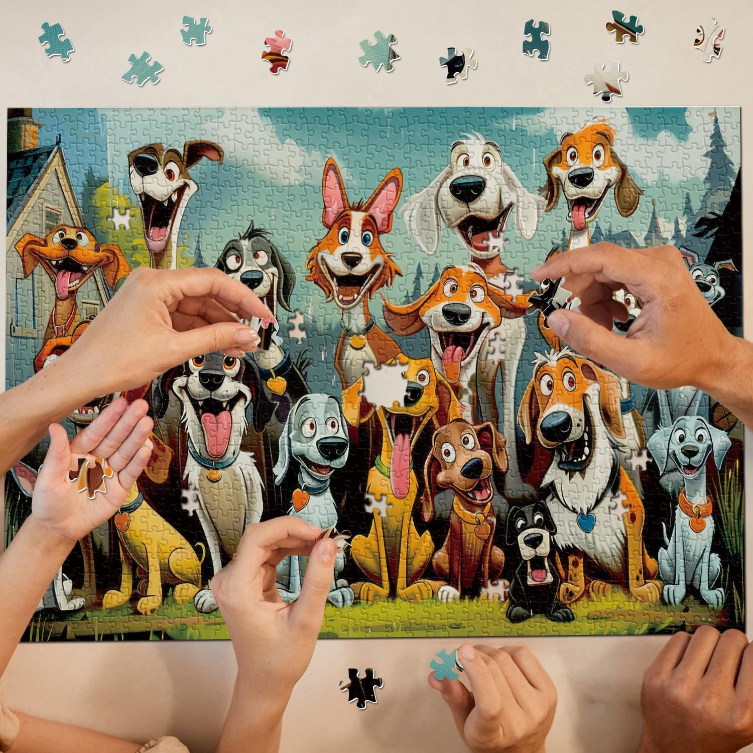 Funny Dog Puzzles for Adults 1000 Pieces, Cute Puppy Animal Jigsaw Puzzle, Challenging Puppies Family Puzzle as Home Wall Art Decor