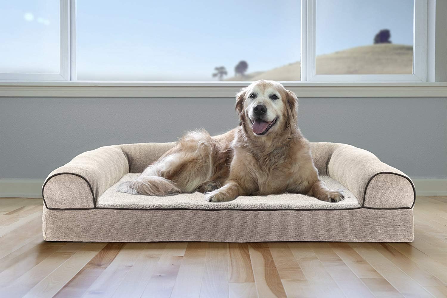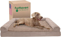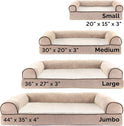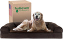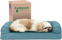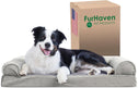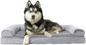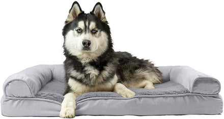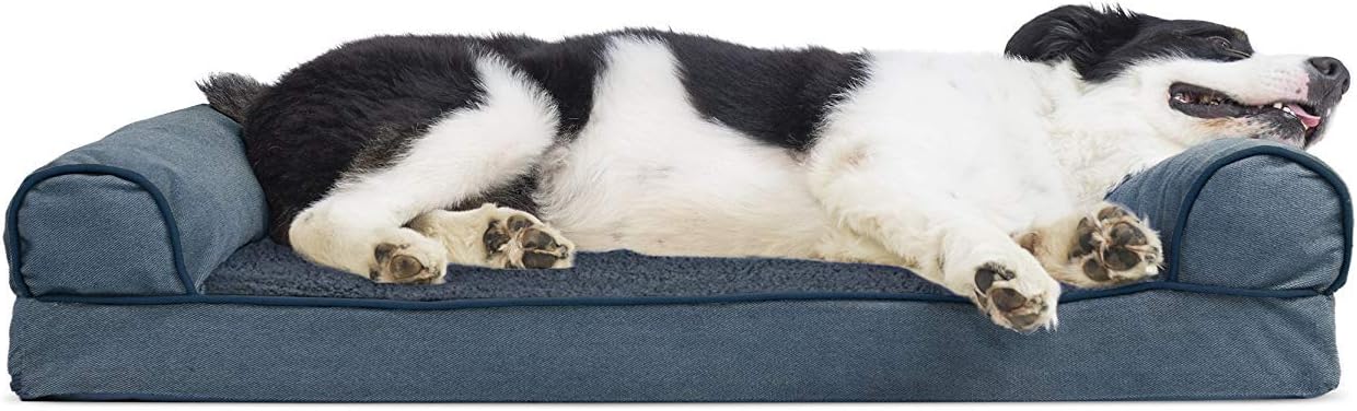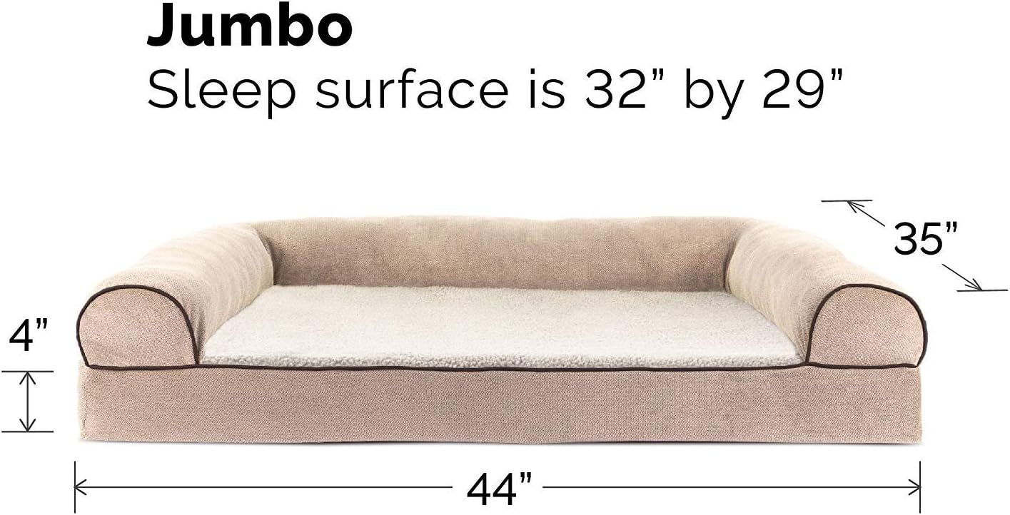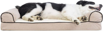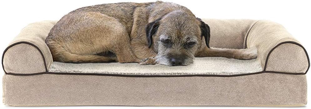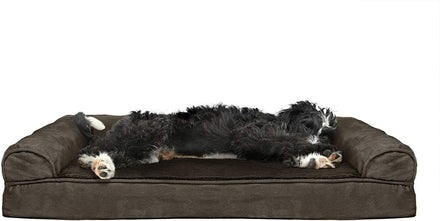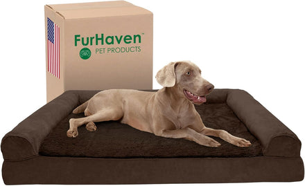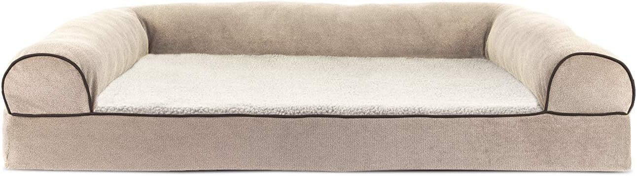 Perfect for pets young and old, the Furhaven Sherpa & Chenille Sofa-Style Dog Bed is designed to provide your loved one with maximum comfort for a good night’s rest. With a warm, soft faux fleece sleeping surface your pet will be more snug than a bug in a rug! The medical-grade foam core includes a layered orthopedic foam core topped with gel-infused memory foam. Micro gel beads help keep the bed cooler while memory foam conforms to your pet's shape providing superior support of joints and pressure points. Gel foam has cooling properties reducing the sleeping surface by 1- or 2-degrees, wicking heat away from your pet. The superior support provided by both foam cores will help your pet reach a deeper, more restorative rest for your pet's health. These are the perfect dog beds for hot summer days. They’ll love the woven chenille bolsters' soft but supportive feel provided on three sides giving them a variety of cozy positions to snuggle into. The bolsters are a great pillow for your pet to lie their head on or, for pets that like to cozy into your couch, they can snuggle close to the sides for a sense of security and warmth. Whatever position your pooch likes to lay in, they’ll find nothing but comfort and sweet dreams! With the feel of a couch, your pet will love having their own space to curl into while you’ll love having your favorite spot on the couch back! No more unwanted pet fur and scratches on your furniture. It’s great for older pets who may be unable to jump on the couch and have had to lie on the floor. Easy to clean. Cover care: Remove from core before washing (see seam label for fabric care instructions). Foam care: Cooling gel foam is highly absorbent. Spot clean with mild soap or enzyme-based cleaning spray. Rinse but DO NOT SOAK OR SUBMERGE. Press out moisture with a dry towel and air dry. A fan may be used to speed drying. Do not wring or place in machine dryer. Dry completely before use. Not for unsupervised use by animals with destructive chewing behavior.