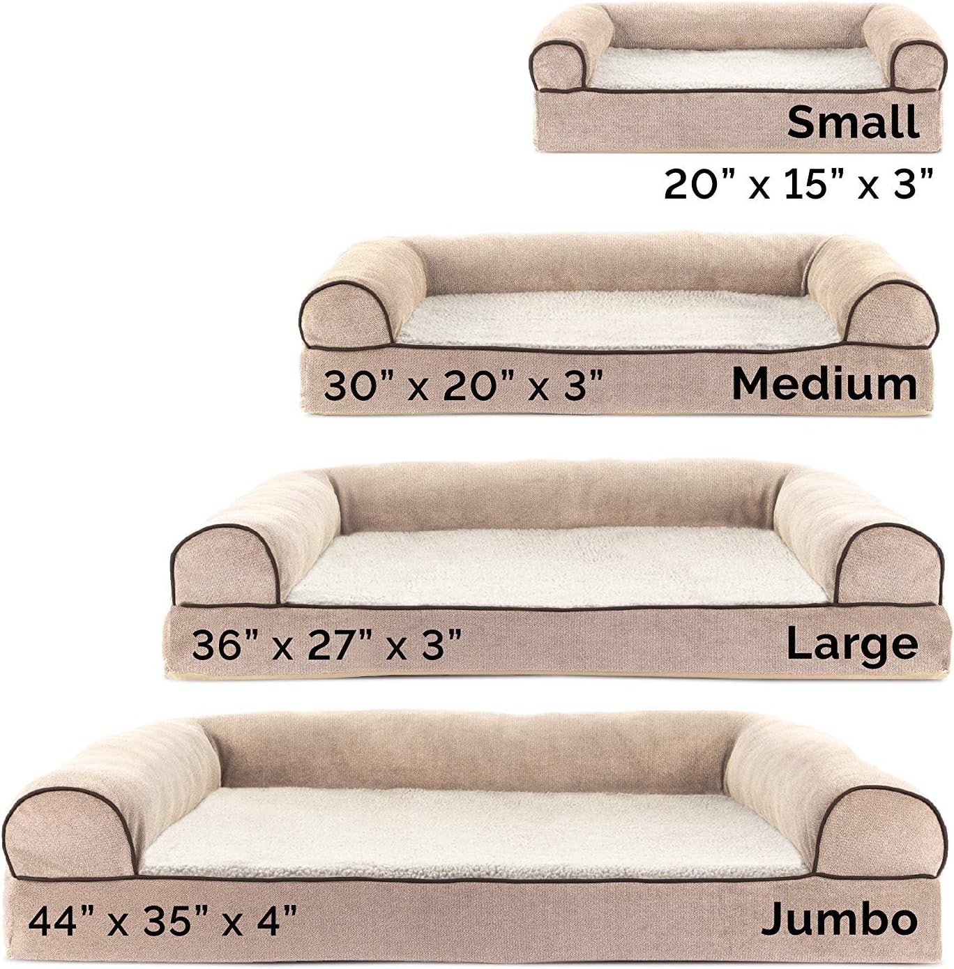- Available in Multiple Sizes - Our dog beds are available in size small (for dogs up to 20 lbs), medium (for dogs up to 35 lbs), large (for dogs up to 55 lbs), jumbo XL (for dogs up to 95 lbs) and jumbo plus XXL (for dogs up to 125 lbs).