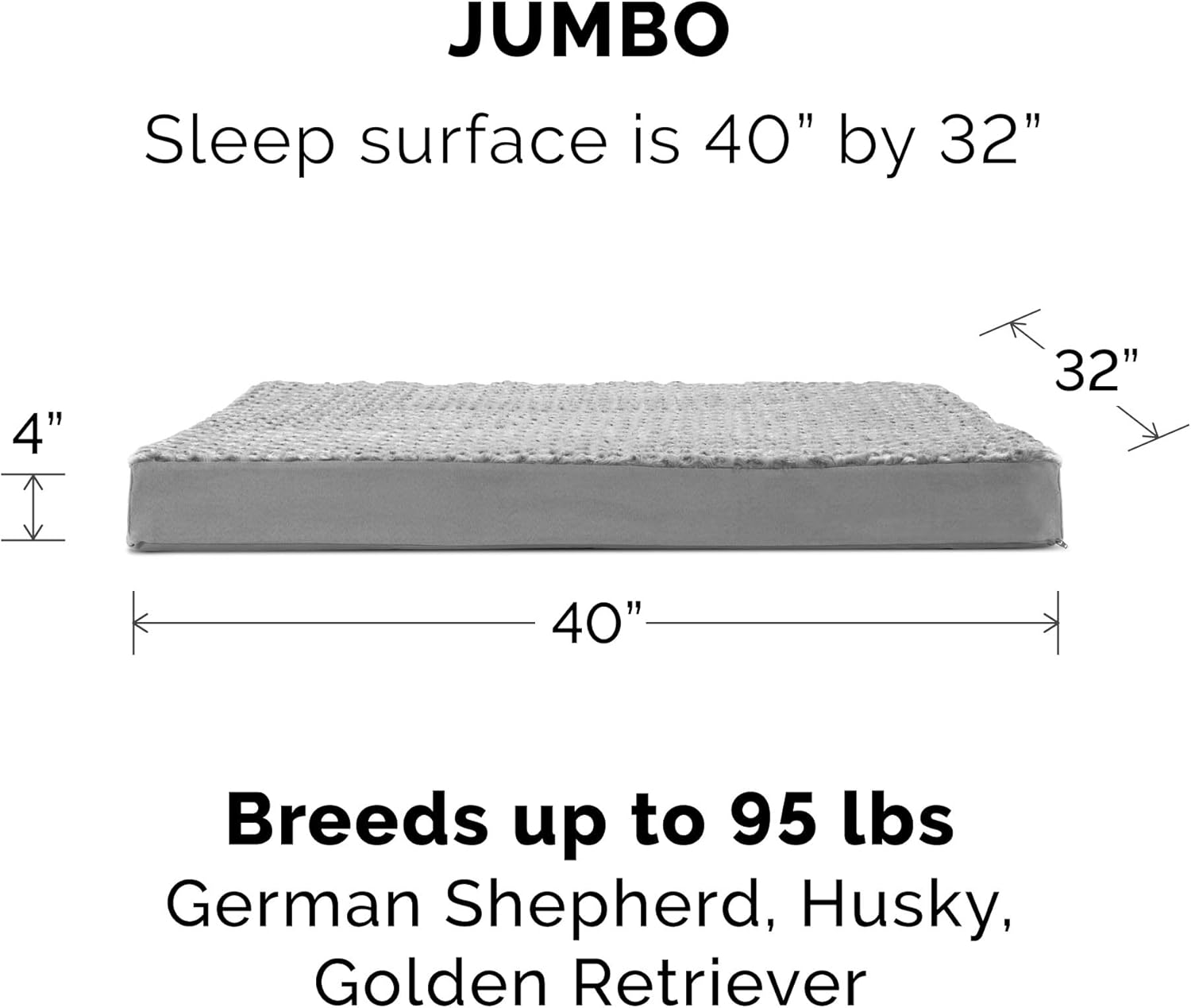 - PRODUCT DETAILS: Gray; Jumbo, 44" x 35" x 4"