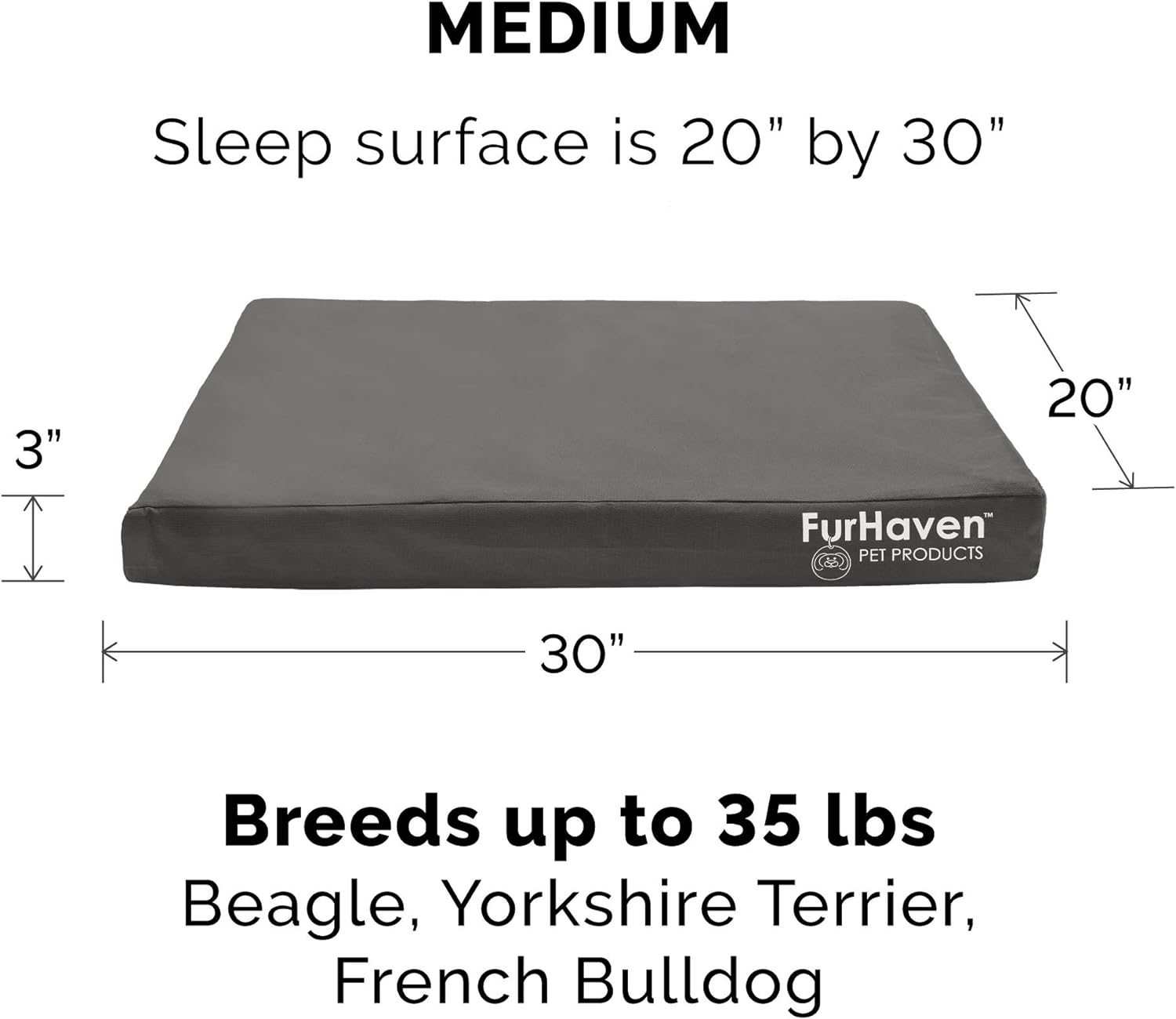 - Medium Sized: This orthopedic dog bed is designed for medium to small sized dogs up to 35 lbs.
