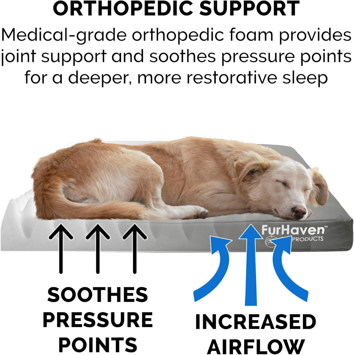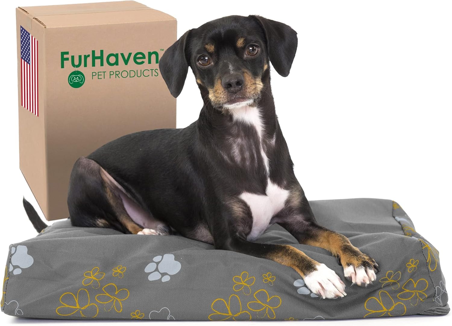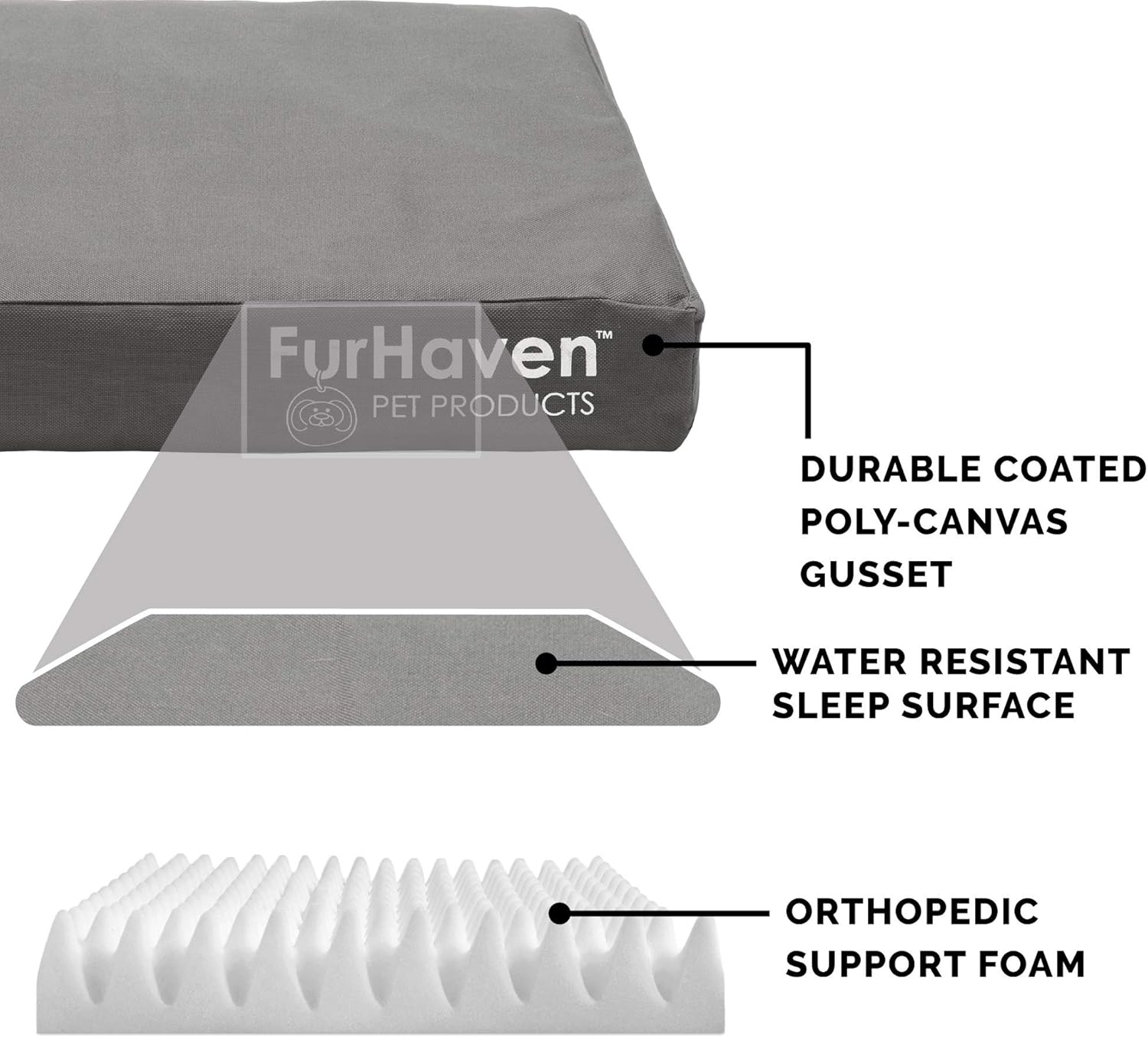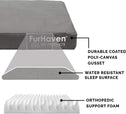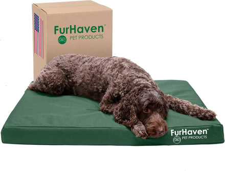 Give your pet the restful sleep they deserve with a Furhaven Indoor/Outdoor Logo Print Water-Resistant Mattress Dog Bed. Weatherproof cover is made from an outdoor durable water-resistant coated polycanvas. Perfect for dogs and cats that love to sprawl in their sleep. The orthopedic (egg crate) foam base supports your pet's joints, cushions pressure points, and helps improve air circulation for optimum rest. The Jumbo Plus option, for larger breeds, features a solid slab orthopedic foam for greater support and comfort. The zippered cover is easily removed and machine washable for your convenience. Low profile, step-on design for easy access by older or disabled pets. Easy to clean. Cover care: Remove from core before washing (see seam label for fabric care instructions). Foam care: Spot clean with mild soap; rinse. Blot, then air dry. Do not wring. Not for unsupervised use by animals with chewing behaviors.