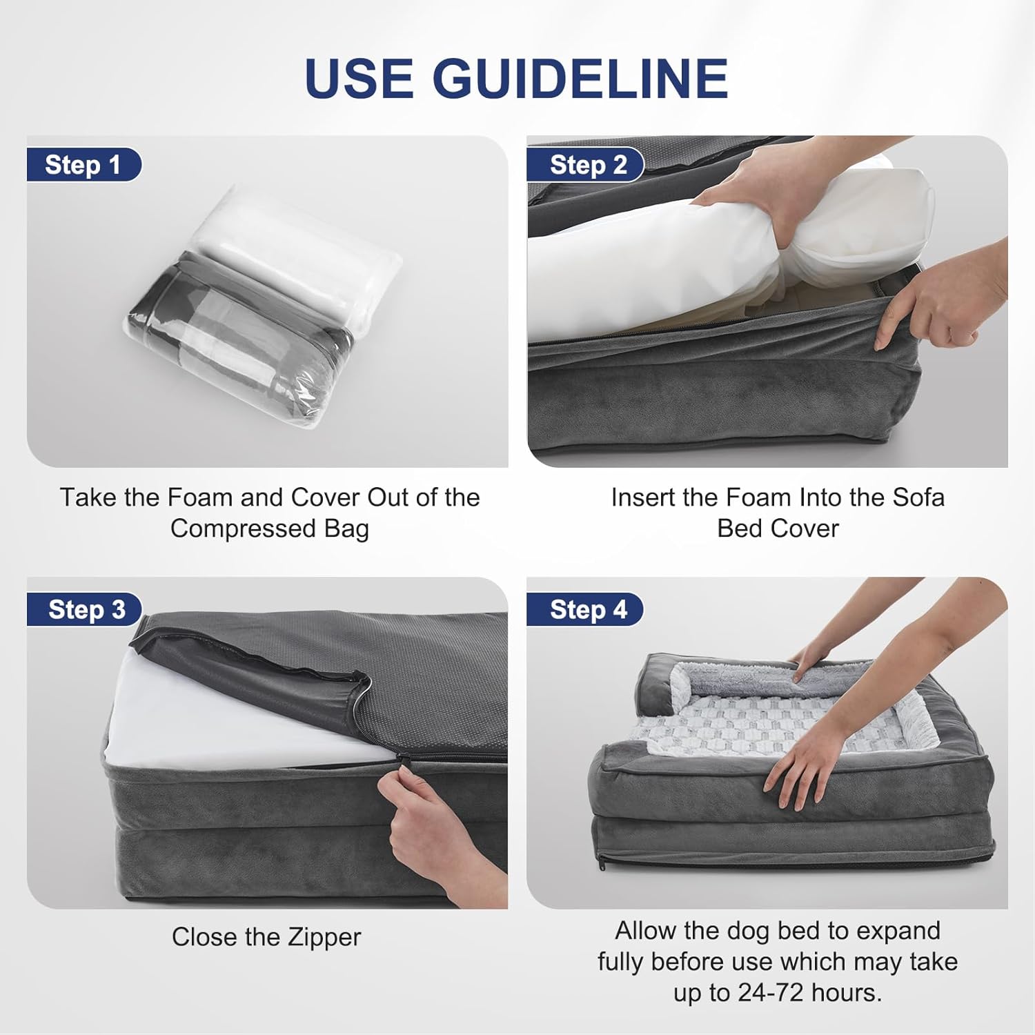 - Machine Wash and Care: Our washable dog bed with removable cover has a zipper closure and can be easily cleaned by machine. Please note that the inner foam is not washable. After receiving it, leave it for 24-72 hours to rebound the bed.