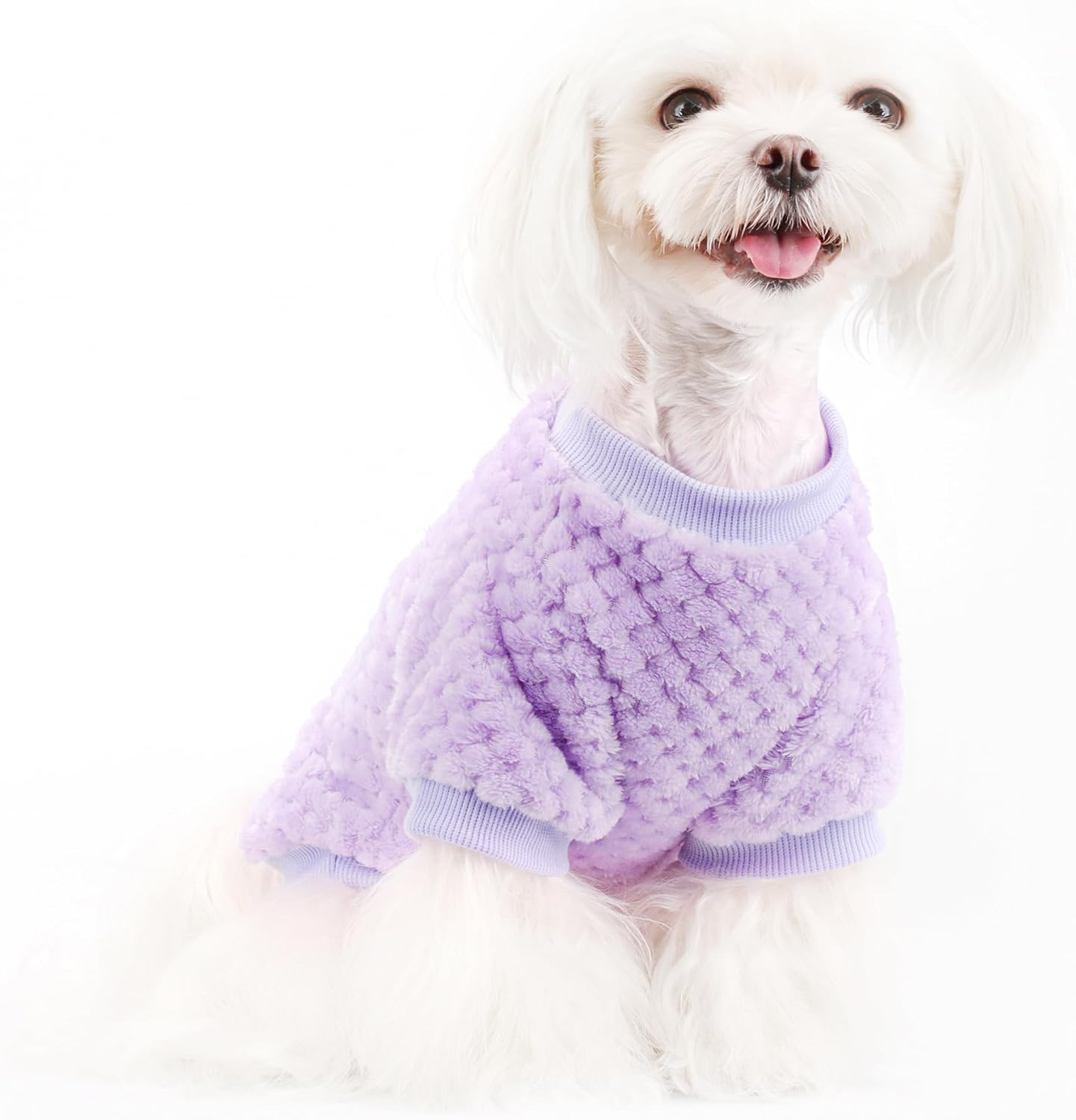 Fuzzy Pineapple Grid Dog Sweater - Ultra Soft & Warm Winter Pet Apparel, Fluffy Textured Knit for Small, Medium Dogs and Cats, Cozy Pullover Dog Coat for Cold Weather.Purple M