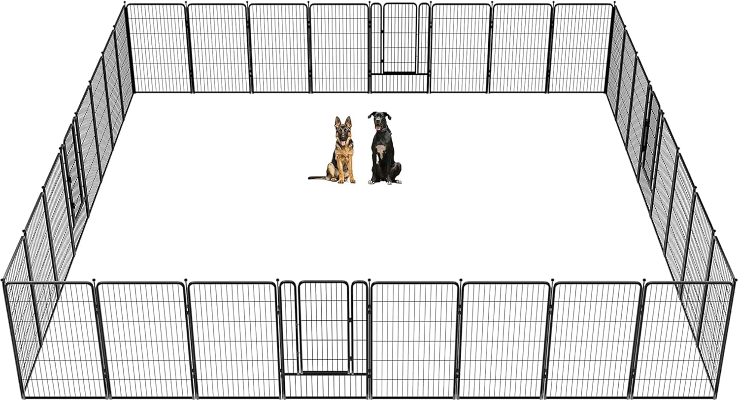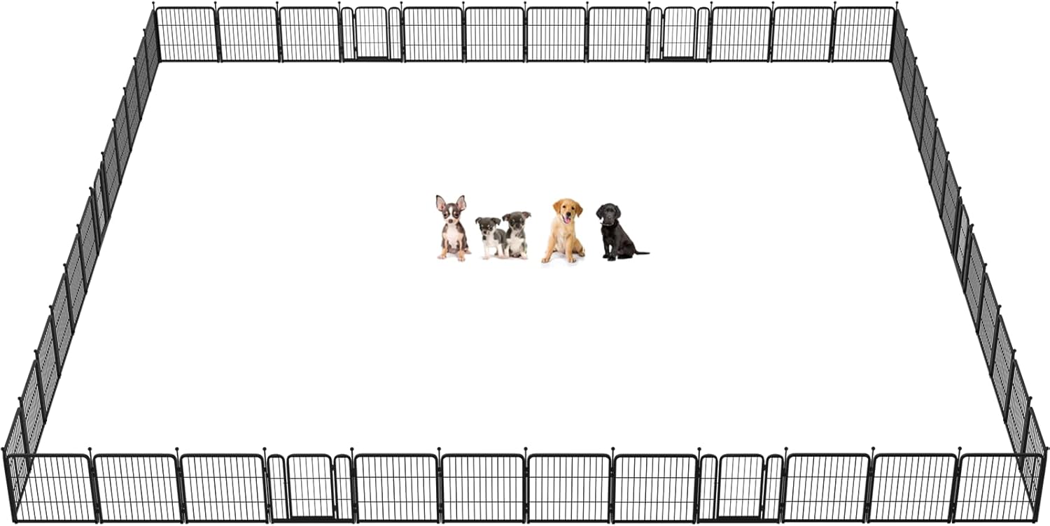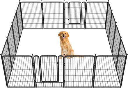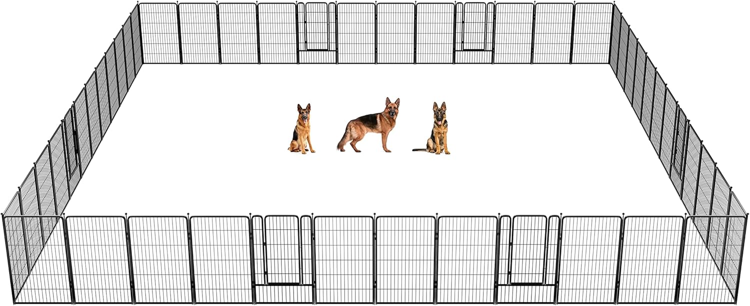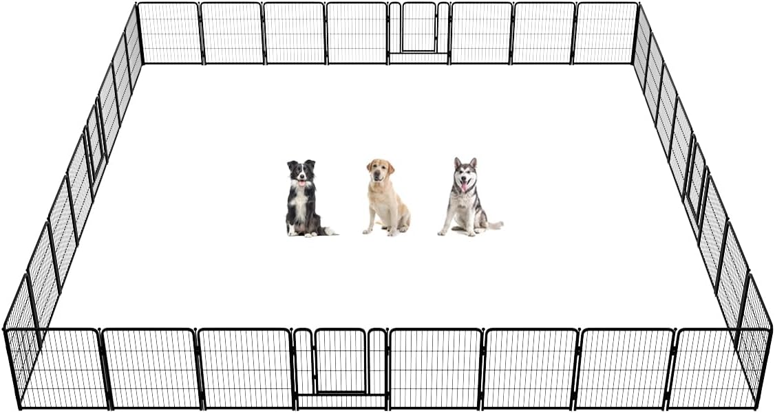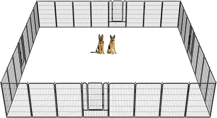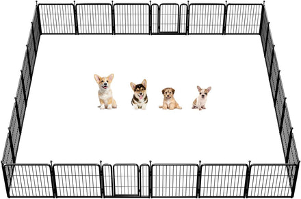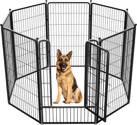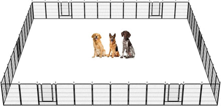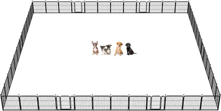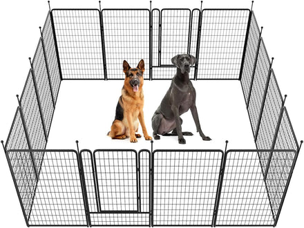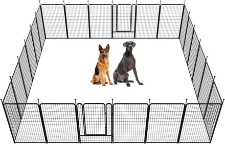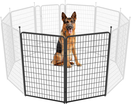 Fences are available in 24/32/40/45/50" heights, so you can choose the right height based on your dog's height and ability to jump. Choose multiple pieces of fence to build larger spaces, so dogs can run freely in the fence.