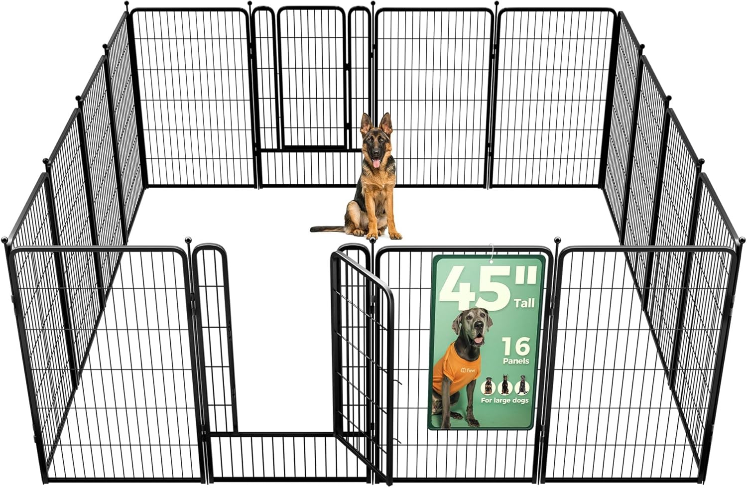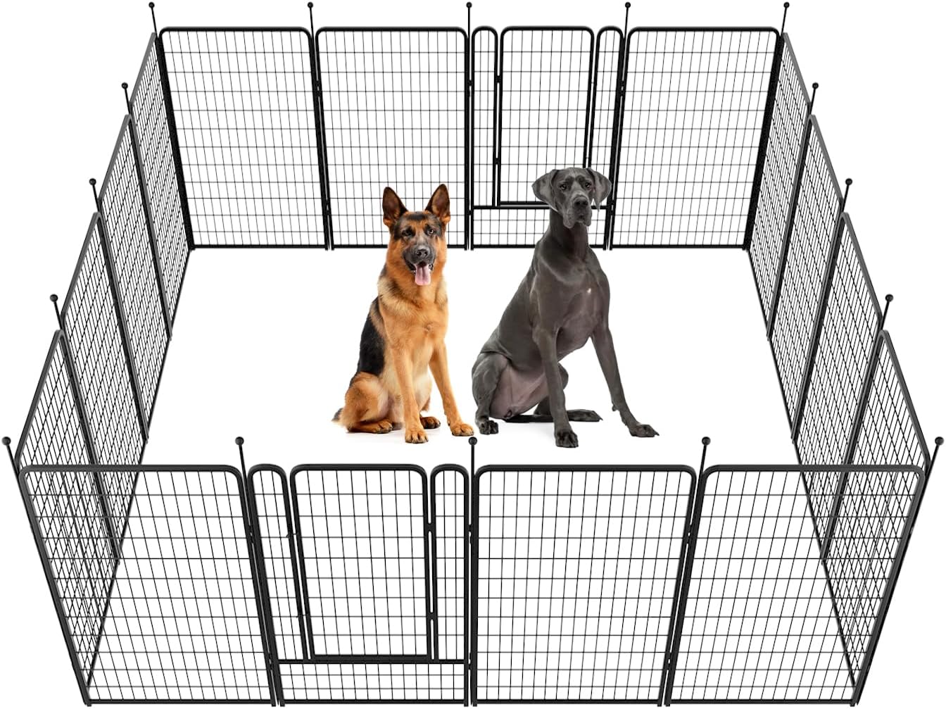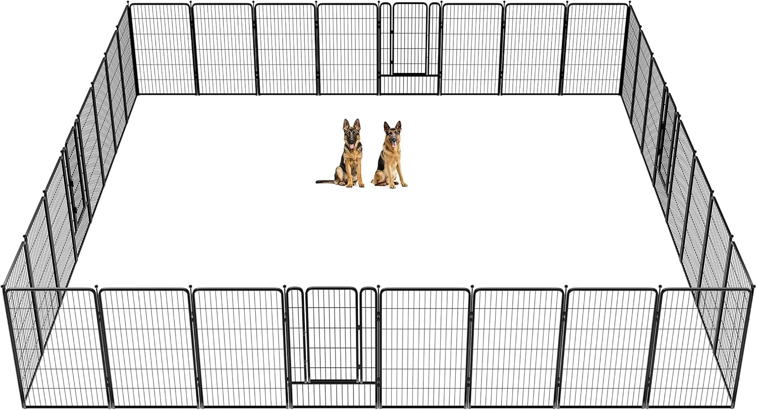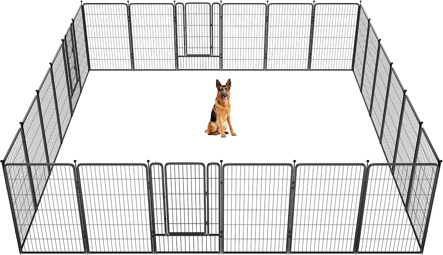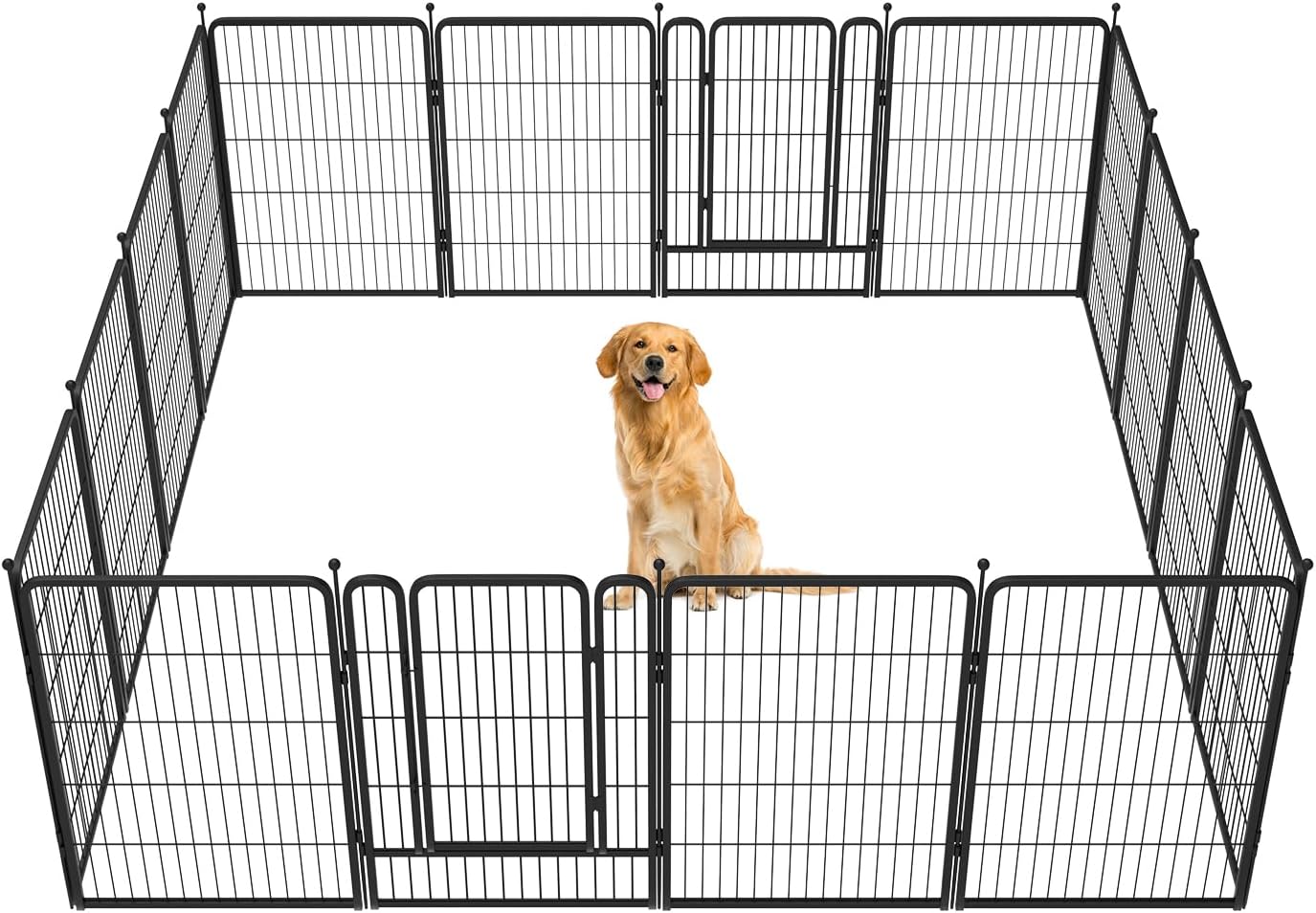 Fences are available in 24/32/40/45/50" heights, so you can choose the right height based on your dog's height and ability to jump. Choose multiple pieces of fence to build larger spaces, so dogs can run freely in the fence.