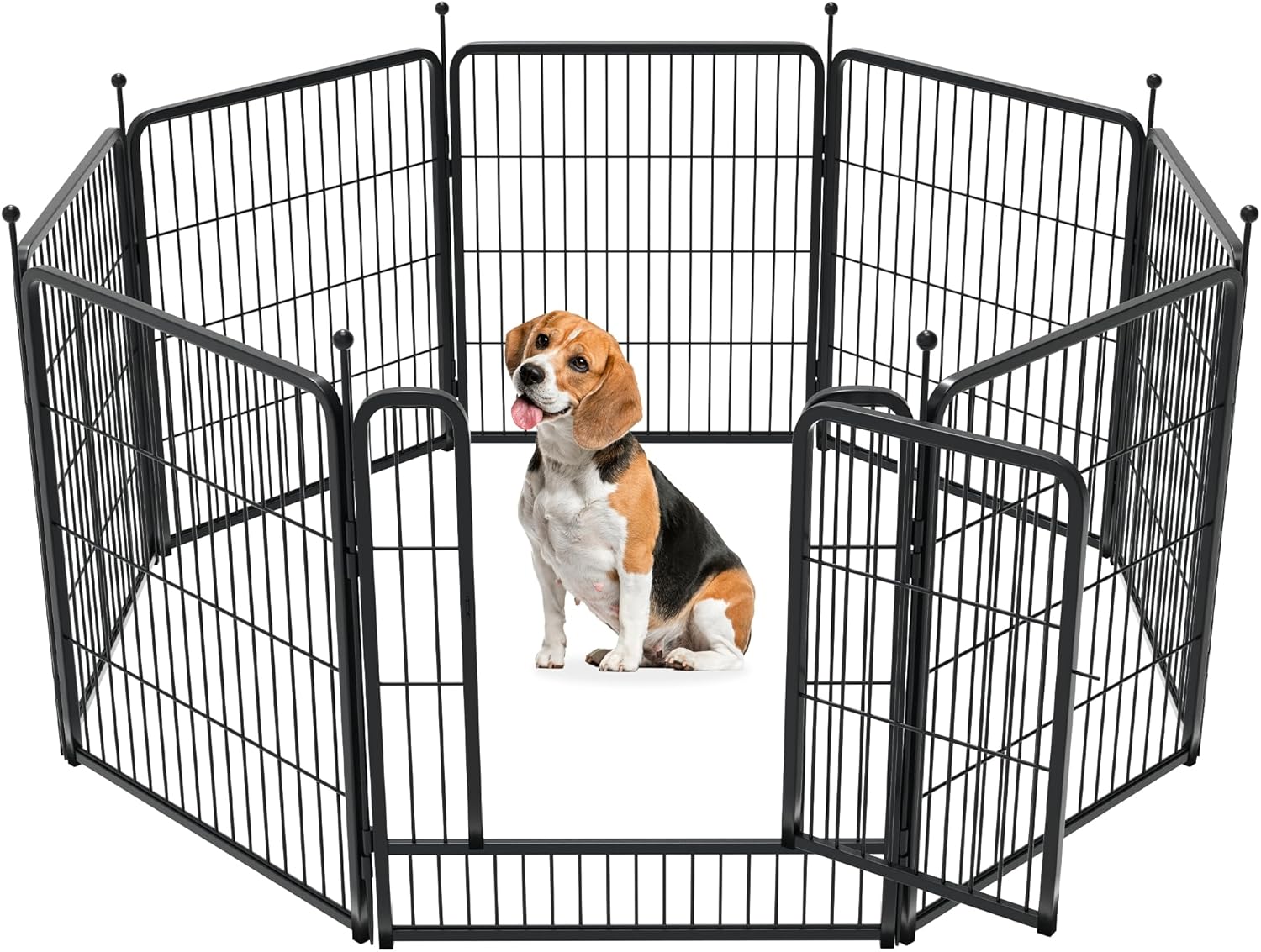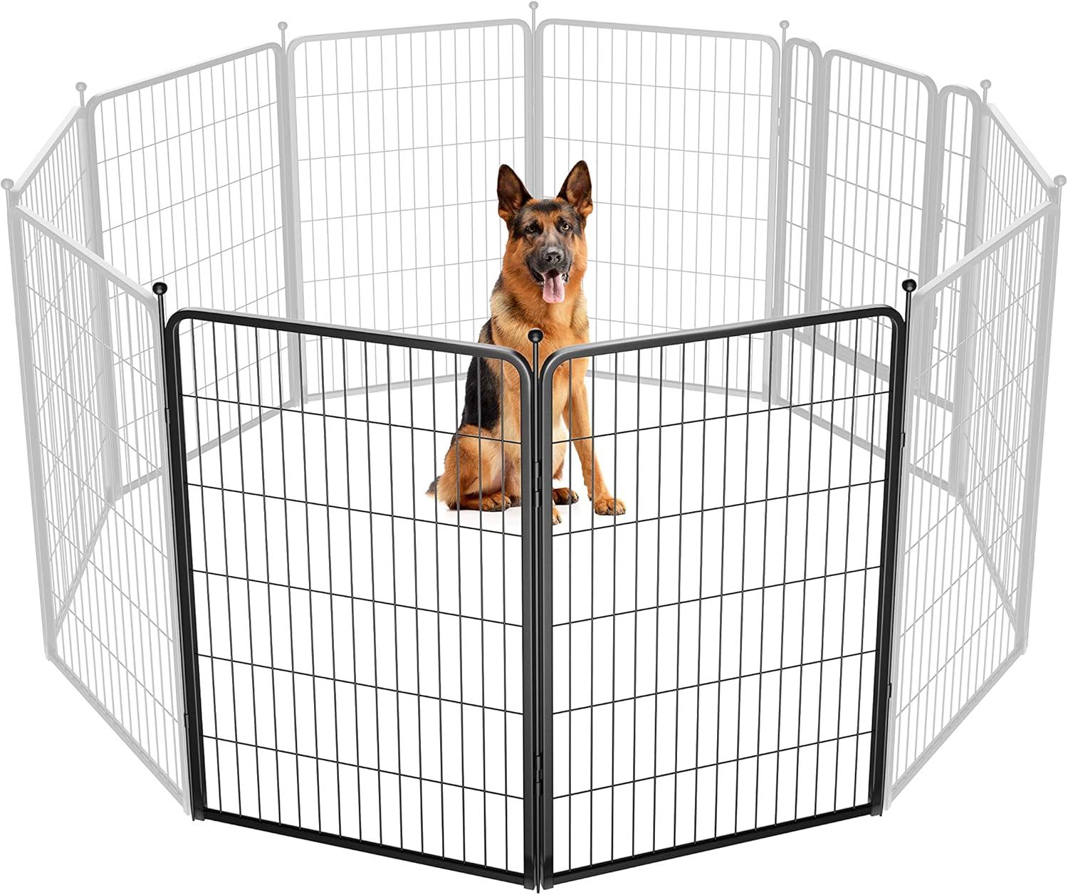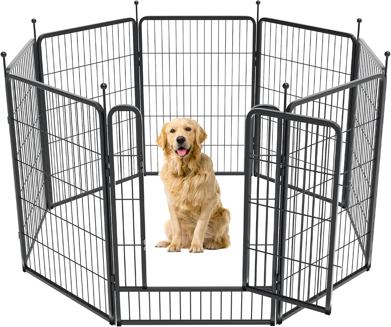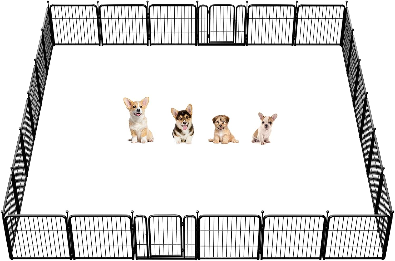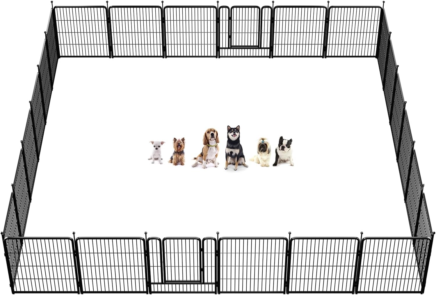 Fences are available in 24/32/40/45/50" heights, so you can choose the right height based on your dog's height and ability to jump. Choose multiple pieces of fence to build larger spaces, so dogs can run freely in the fence.
