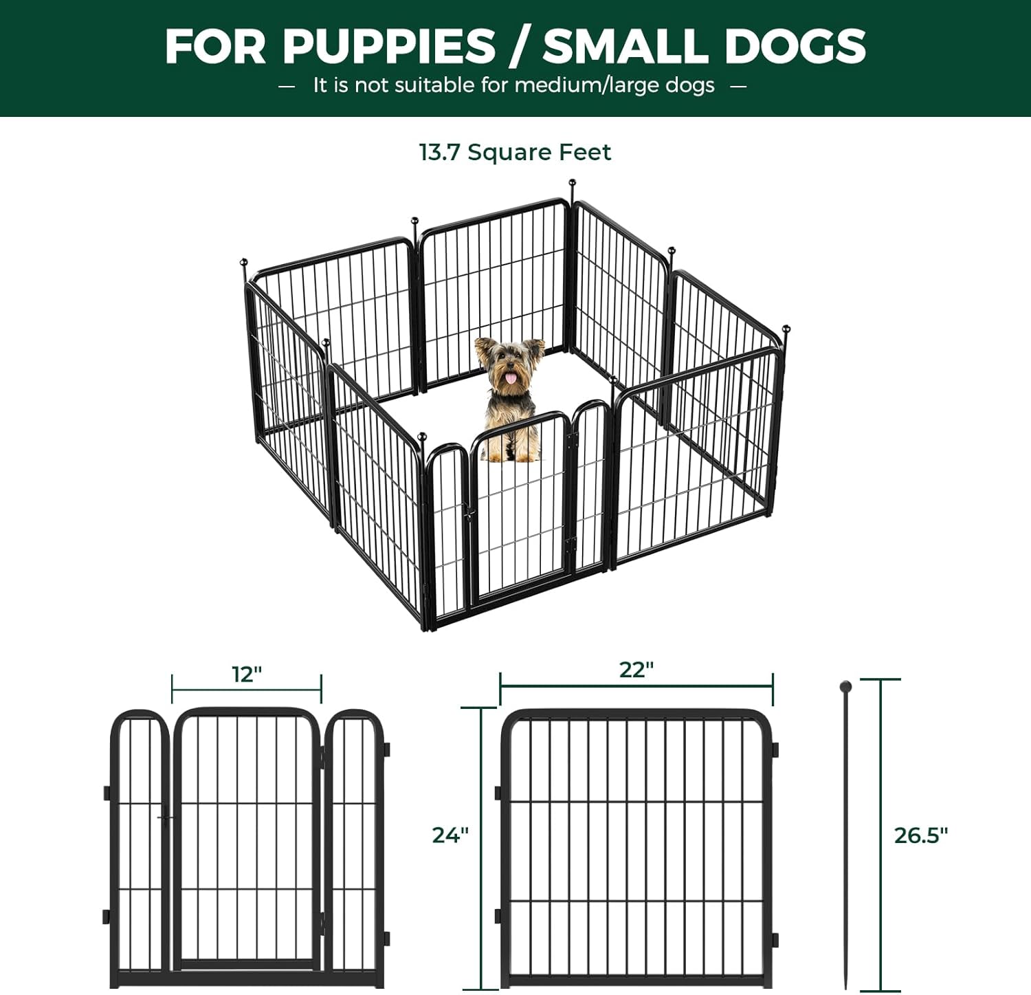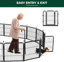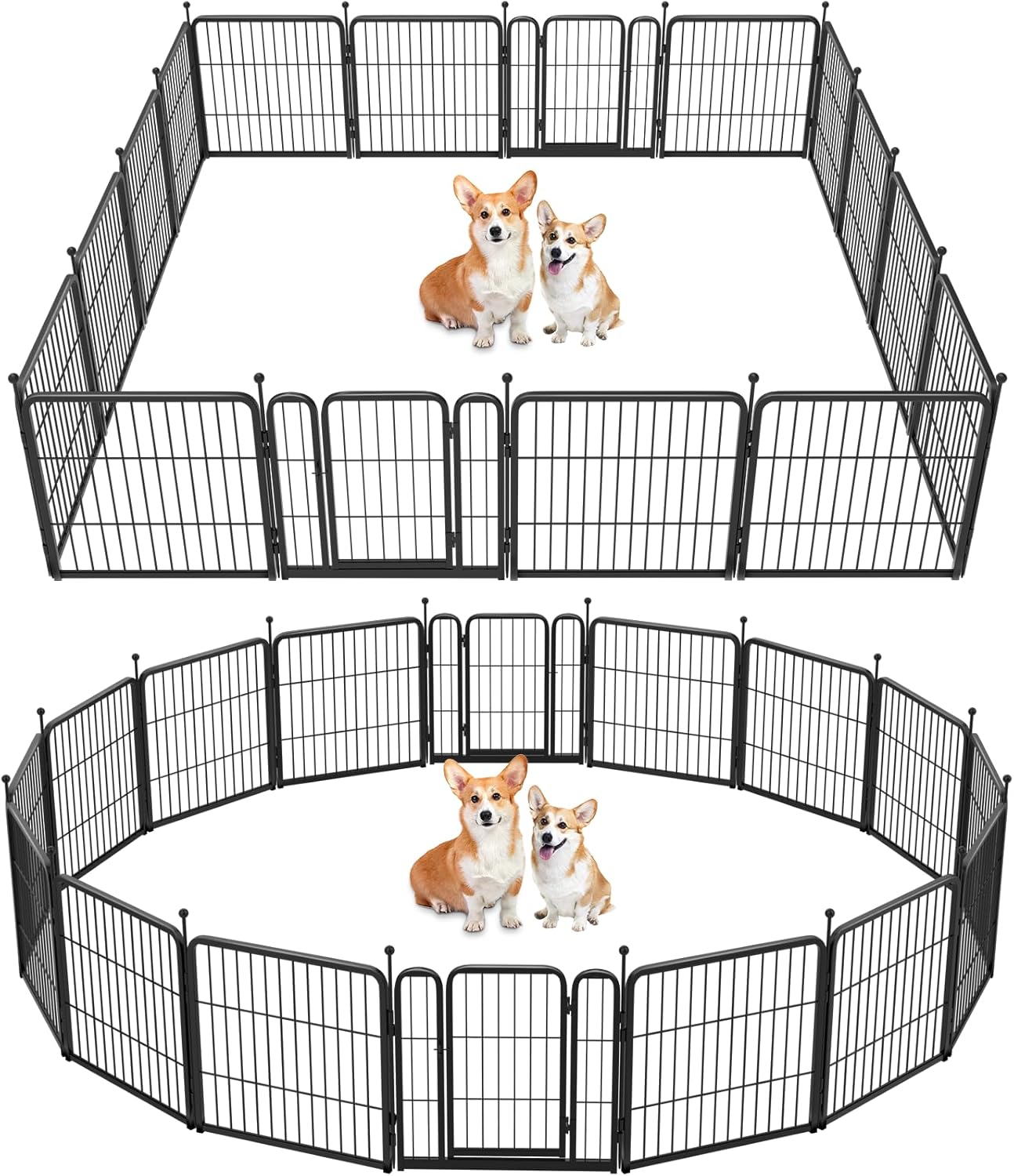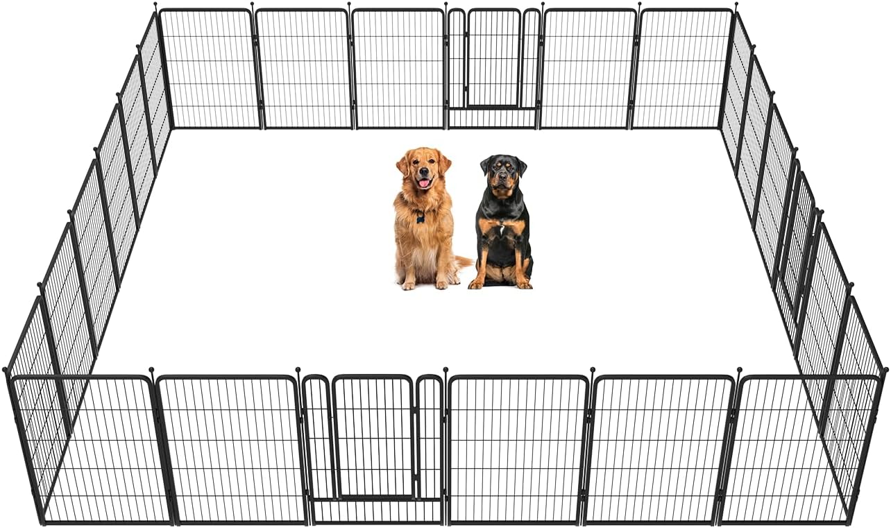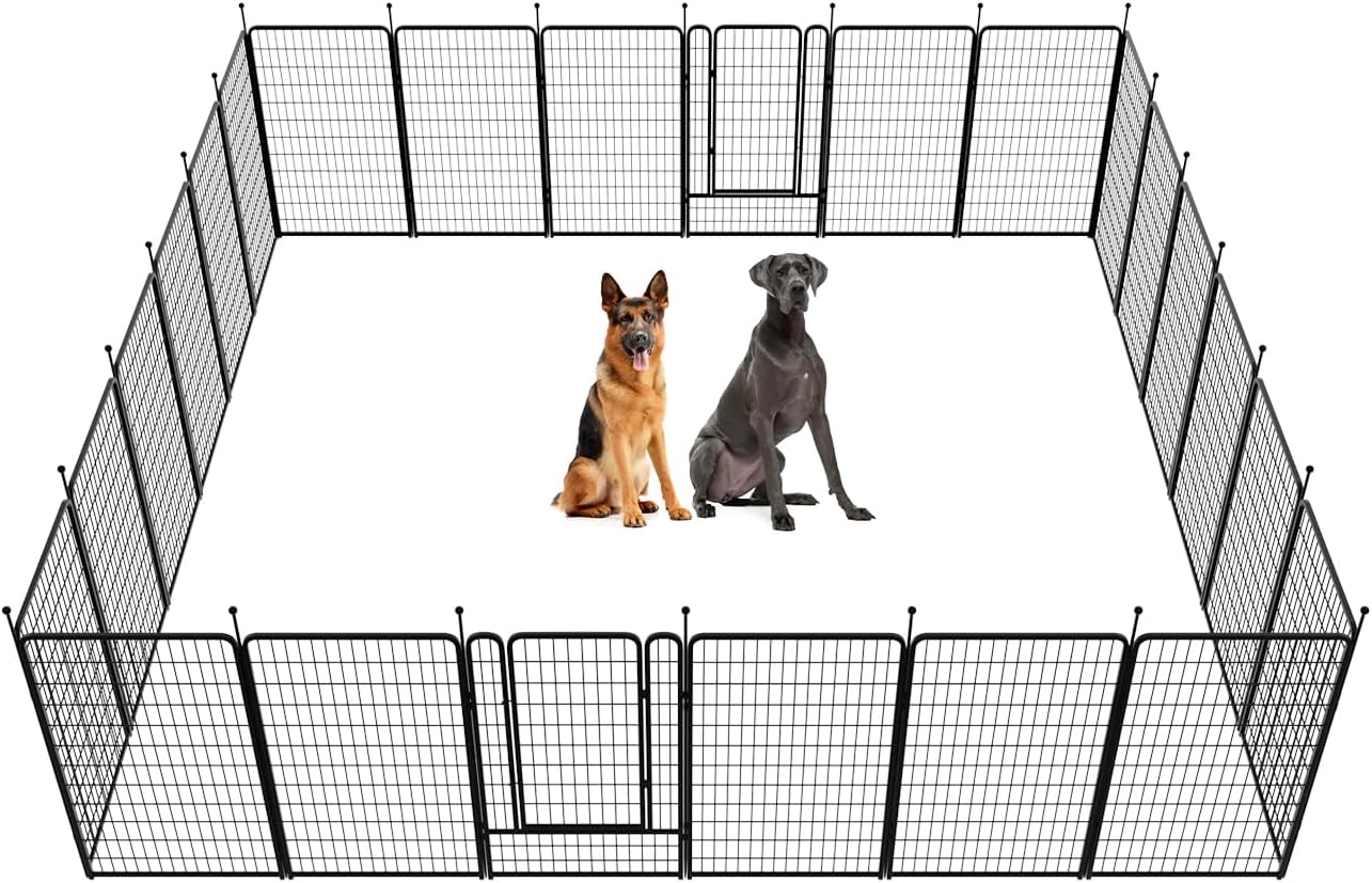 - Supper easy to assemble: It won’t take you more than 5 minutes to assemble these portable dog fences as well as pack them away due to the rod-connected design. Meanwhile, panels can be added or removed freely to give you a fully flexible area and arrange the dog pen in any shape you need.