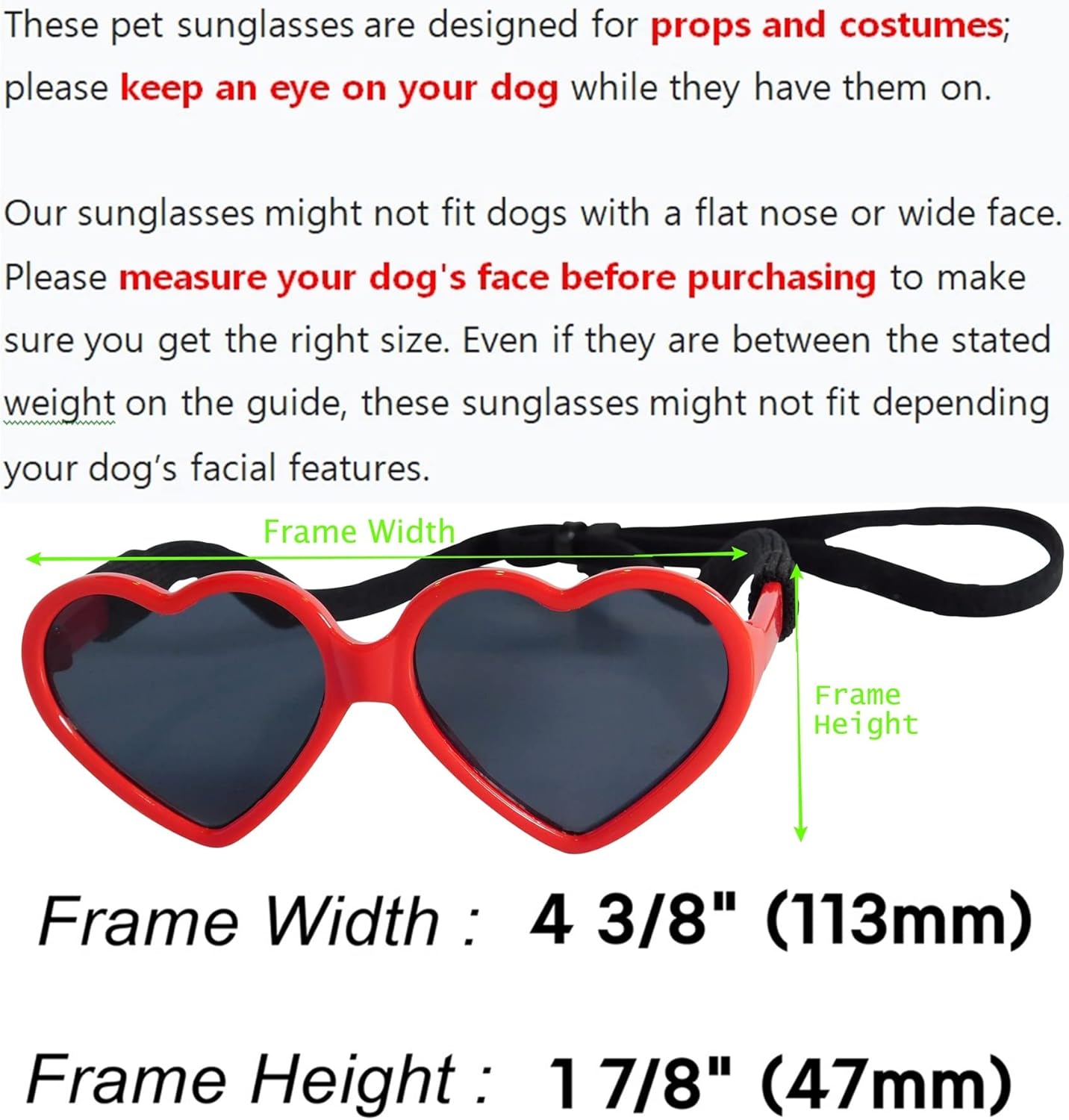 - (IMPORTANT) Sunglasses may NOT fit Flat nosed or Wide faced dogs.