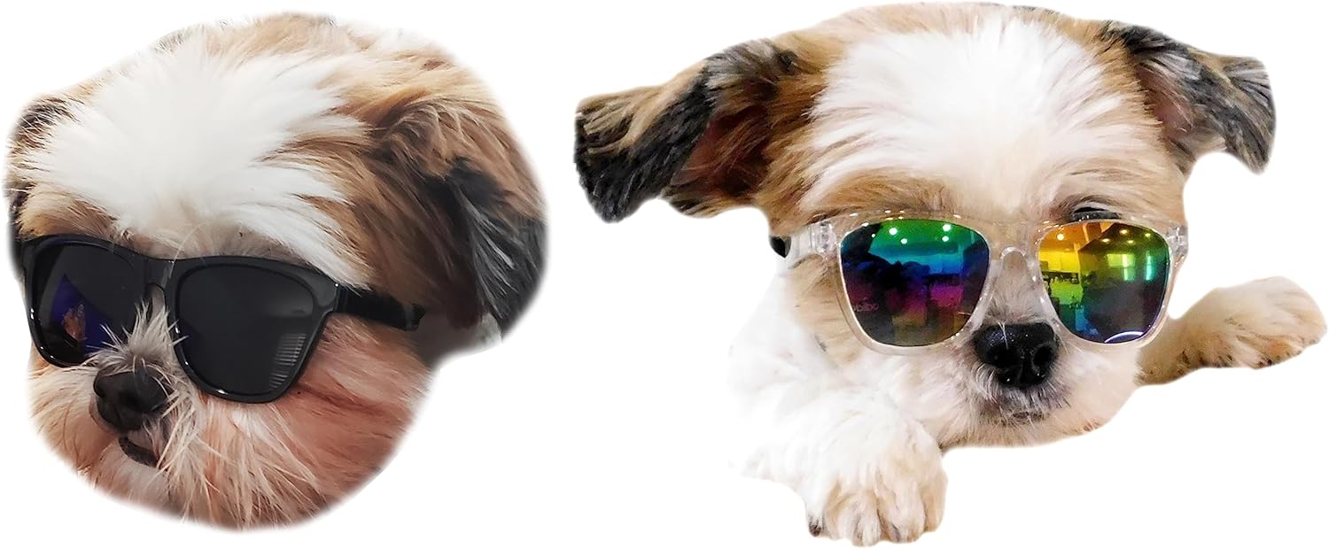 Fits most small dog breeds up to 15lbs such as Chihuahua, Maltese, Pomerian, Shih-tzu, Toy poodle, Yorkshire Terrier. (Important) Sunglasses may NOT fit Flat nosed or Wide faced dogs . Fits small dogs up to 15lbs (Teacup &Toy breeds)