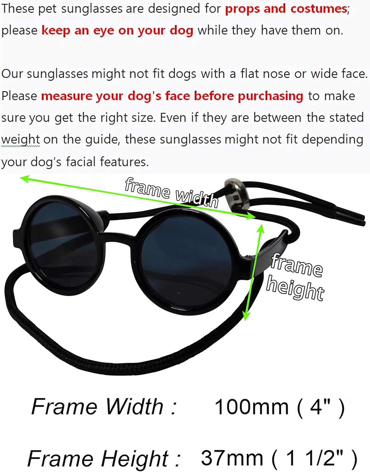 - (Important) Sunglasses may NOT fit Flat nosed or Wide faced dogs.