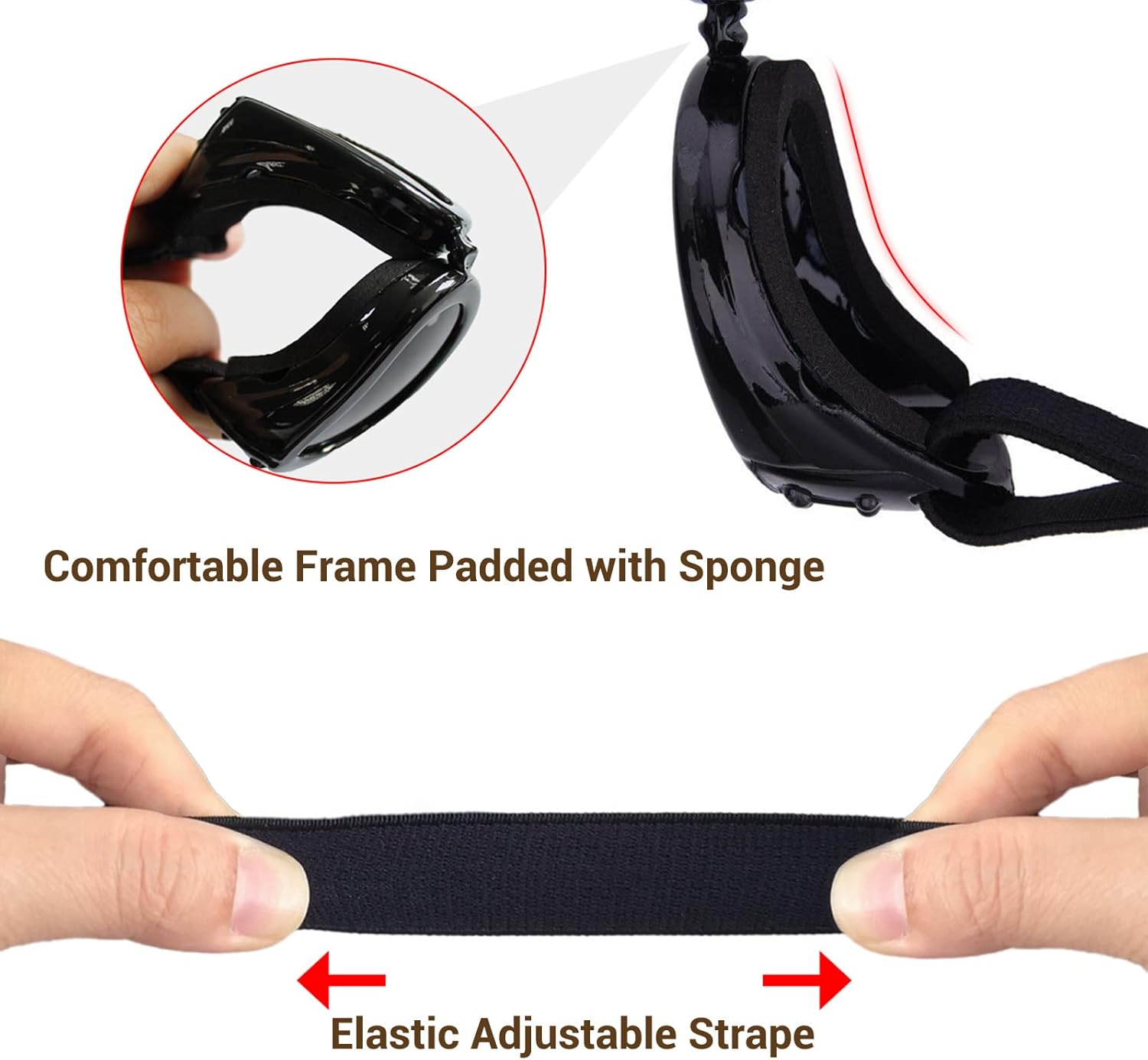 - El mejor diseño de gafas para perro: ya sea que la cara de tu perro sea afilada o plana, estas gafas se ajustarán perfectamente porque son flexibles. La esponja en el marco aumenta la distancia entre los ojos del perro y las lentes, para que las lentes no toquen los ojos del perro, y también aumentan la comodidad de uso.