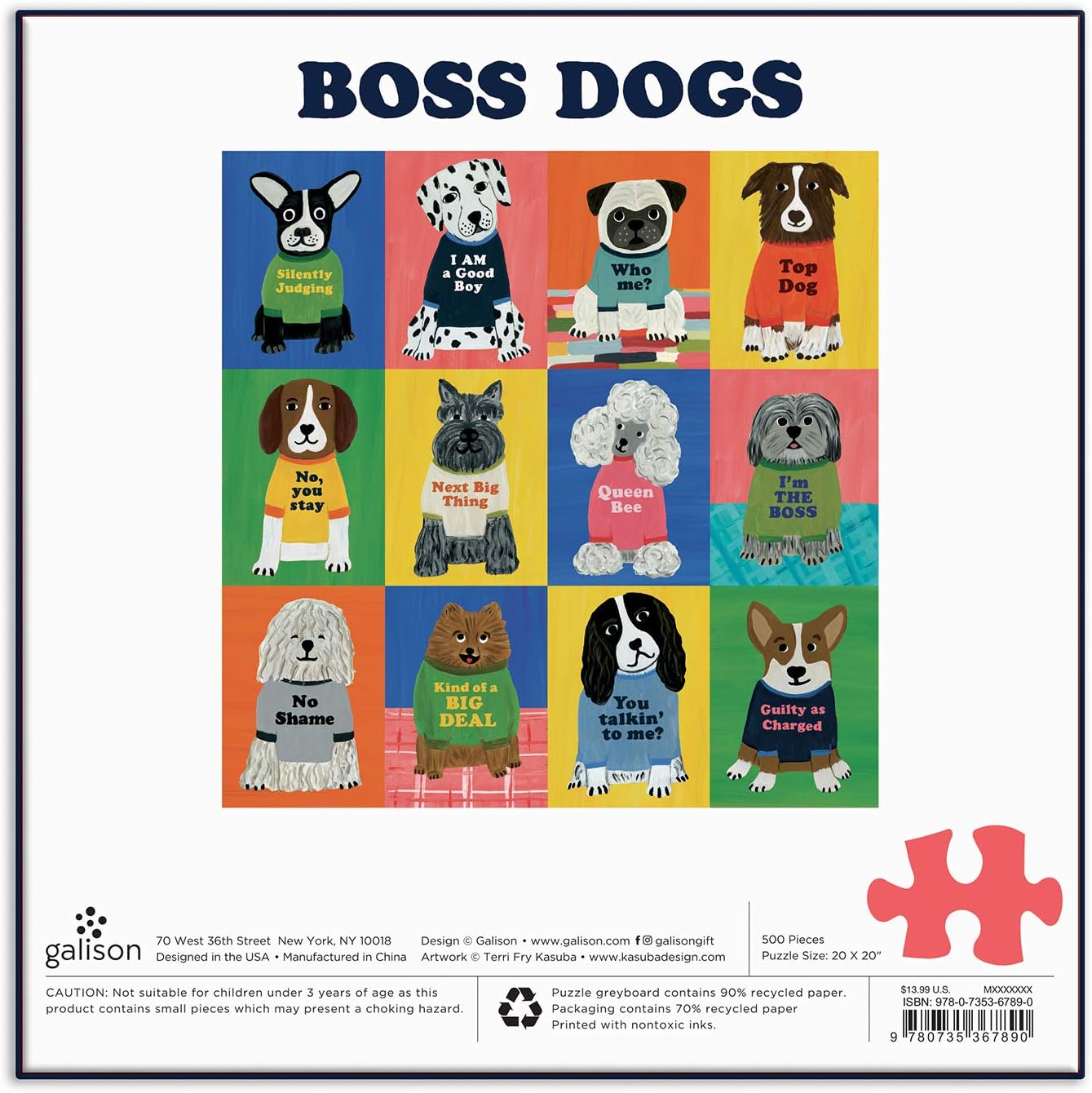 The Boss Dogs 500-piece jigsaw puzzle from Galison is a charming work of art that makes for a challenging and gorgeous puzzle that the whole family will love piecing together. It’s a dog puzzle that highlights the many boss levels our four-legged companions can achieve! It includes an insert with the full puzzle image for reference. The finished animal jigsaw puzzle measures 20” x 20” and when you’re ready to clean up, the 8” x 8” x 2” storage box is the ideal place to keep pieces safe and free from damage. It makes a great gift for any dog or puzzle lover – even if it’s for yourself! Galison was founded in 1979 to work with museums to make artist imagery widely available in the form of well-designed paper products. With new collections each year, Galison has broadened its assortment well beyond stationery to puzzles & games, office products, home décor, and more. Our vision is to inspire people by adding more art to daily life with the products we create.