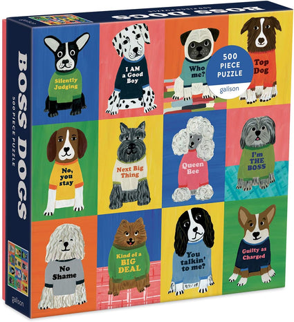 - 500 Piece puzzle – The Boss Dogs 500-piece jigsaw puzzle from Galison is just the right level of challenge for the whole family to join in on. The box includes an insert with the full puzzle image for reference