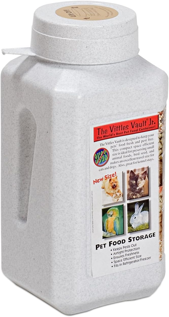 - VITTLES VAULT JUNIOR: Keep your pet's food from going stale with this compact food storage container; Great for travel, it holds 4 to 6 pounds of dry food making it perfect for a 2 to 3 day trip with your pet