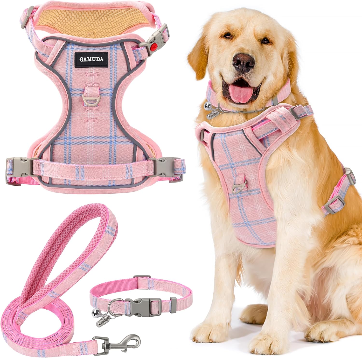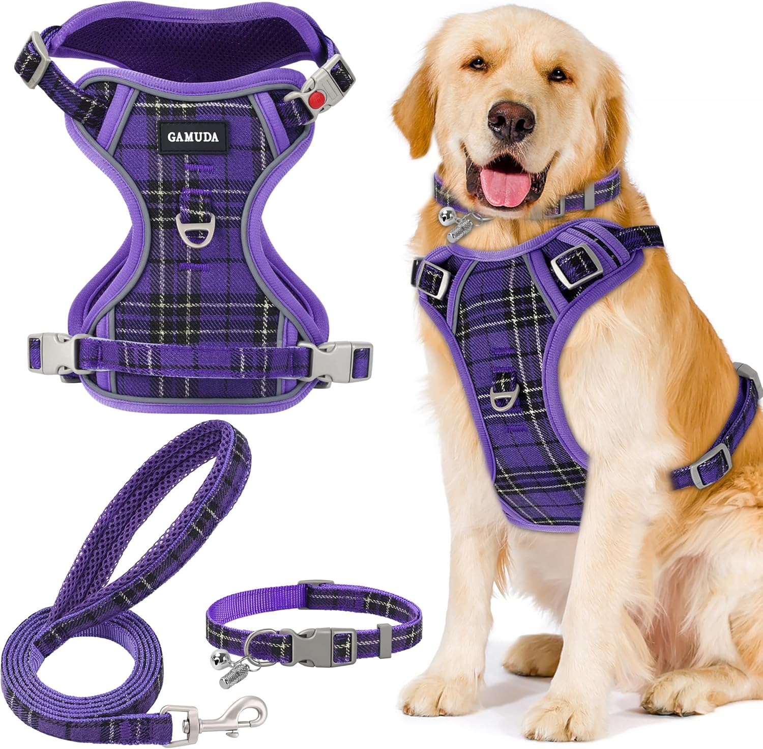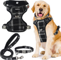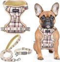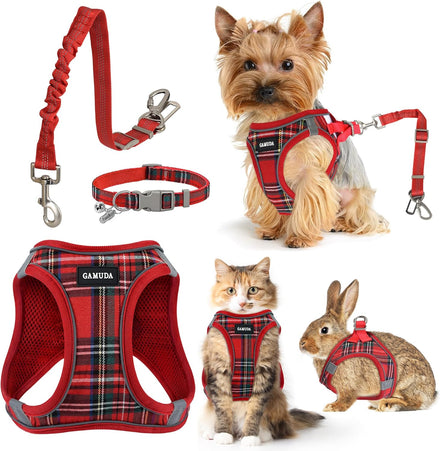 - HARNESS COMFORTABLE MATERIAL: Adjustable dog harness features colorful plaid and breathable mesh fabric, comfortable to wear and will not stick to the dog's hair. Even if your dog wears it all day, he won't feel any discomfort. For daily walking or running, it is a very easy thing to do. Besides, this is a four seasons harness, it keeps the dog cool on hot days and keeps the dog warm on cold days.