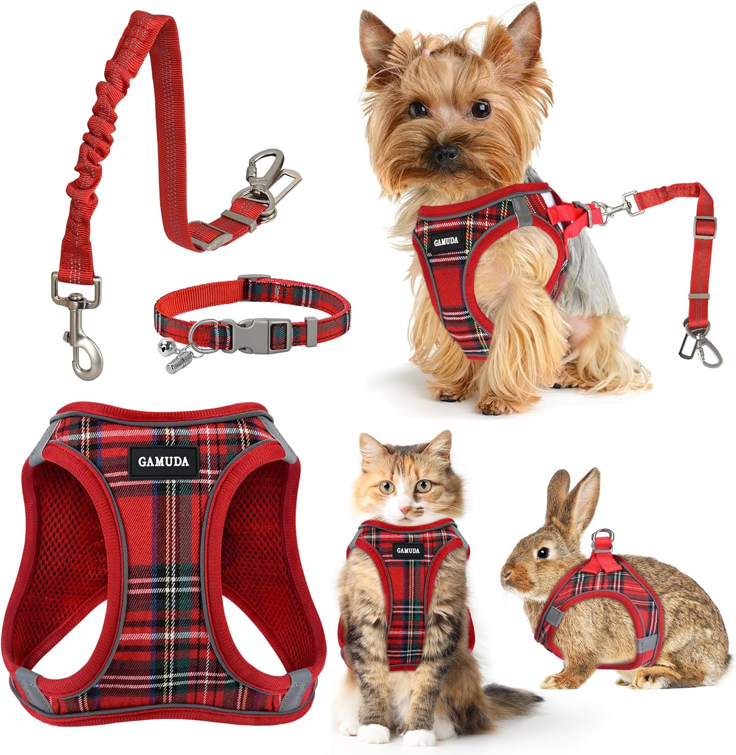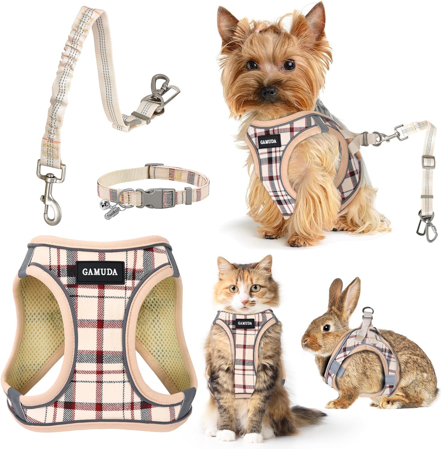 Our complete pet walking set delivers luxurious style with a trendy plaid design, featuring a harness, collar, and leash.