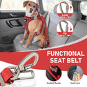 - ELASTIC BUFFER DESIGN, DURABILITY: Restraint with elastic buffer could keep your dog from sudden brake or sharp turn, keep your dogs away from possible choking risk, allows pets active freely in certain space without the feeling of rigid control. The material of our seat belt be extra durable, made of high density nylon fabric to ensure durability, and the metal elements of the construction to be sturdy enough not to unbuckle or snap at the worst possible moment.